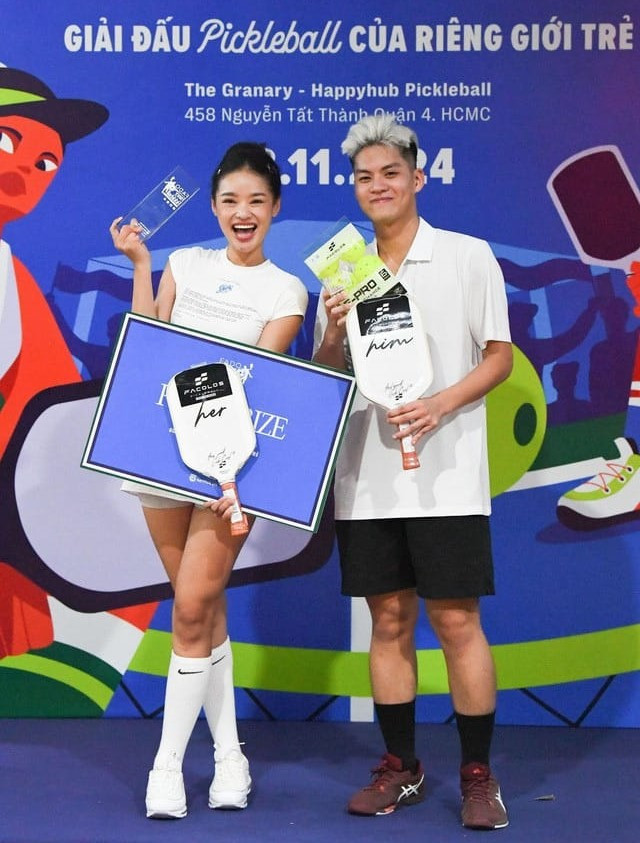 Sau nhiều giờ thi đấu gay cấn, tại hạng mục thi đấu của các vận động viên là nghệ sĩ, KOL, ngôi vô địch đã thuộc về cặp đôi Như Mỹ - Jayden. Ngoài đời, cả hai đều sở hữu phong cách thời trang đời thường ấn tượng. "Trước khi chơi, mình cũng nghe rất nhiều điều tiếng. Nhưng khi tập rồi, mới biết pickleball rất vui, giải tỏa stress. Mình cũng để ý mọi người đang dần thay đổi định kiến từ chê bai pickleball, chuyển sang thích và tập luyện nhiều hơn. Bên cạnh đó, bộ môn này cũng giúp mình có thêm nhiều bạn bè chất lượng nữa", Như Mỹ cho biết.