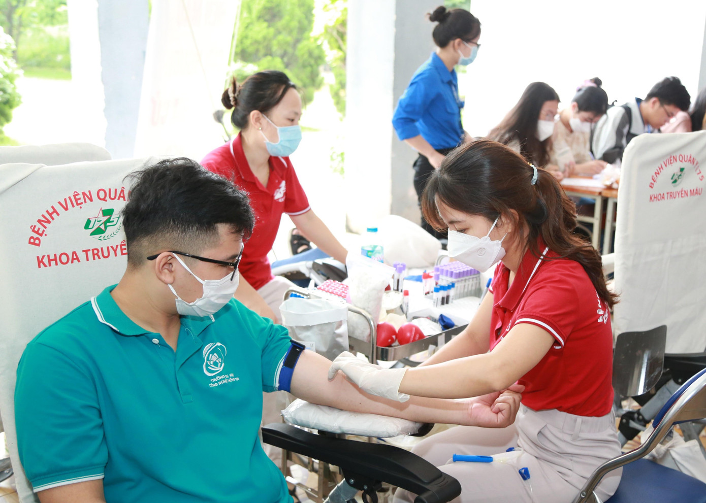 | Sau khi hỗ trợ triển khai các hoạt động cùng Ban tổ chức, nữ tình nguyện viên của trường đã góp đơn vị máu tại chương trình Chủ nhật Đỏ. |