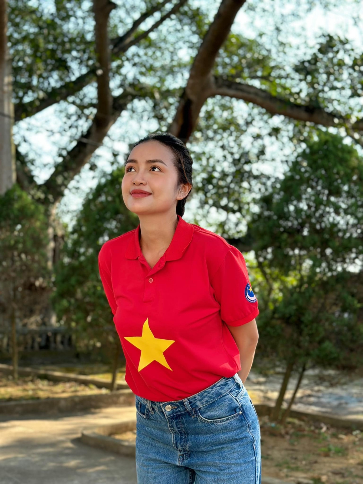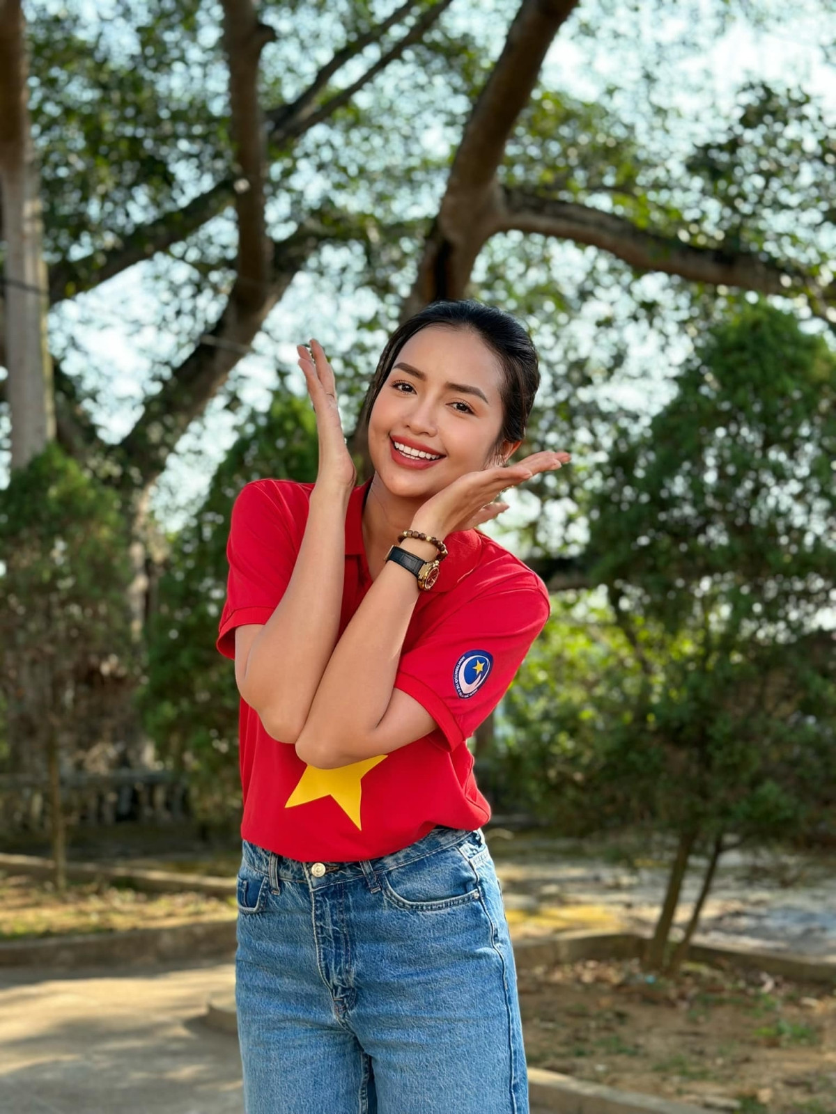 Hoa hậu Ngọc Châu mặc áo cờ đỏ sao vàng: "Xin chào buổi sáng cuối cùng của năm 2024!"