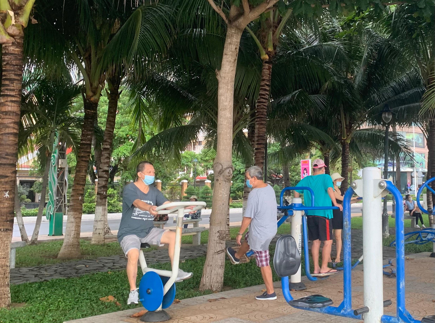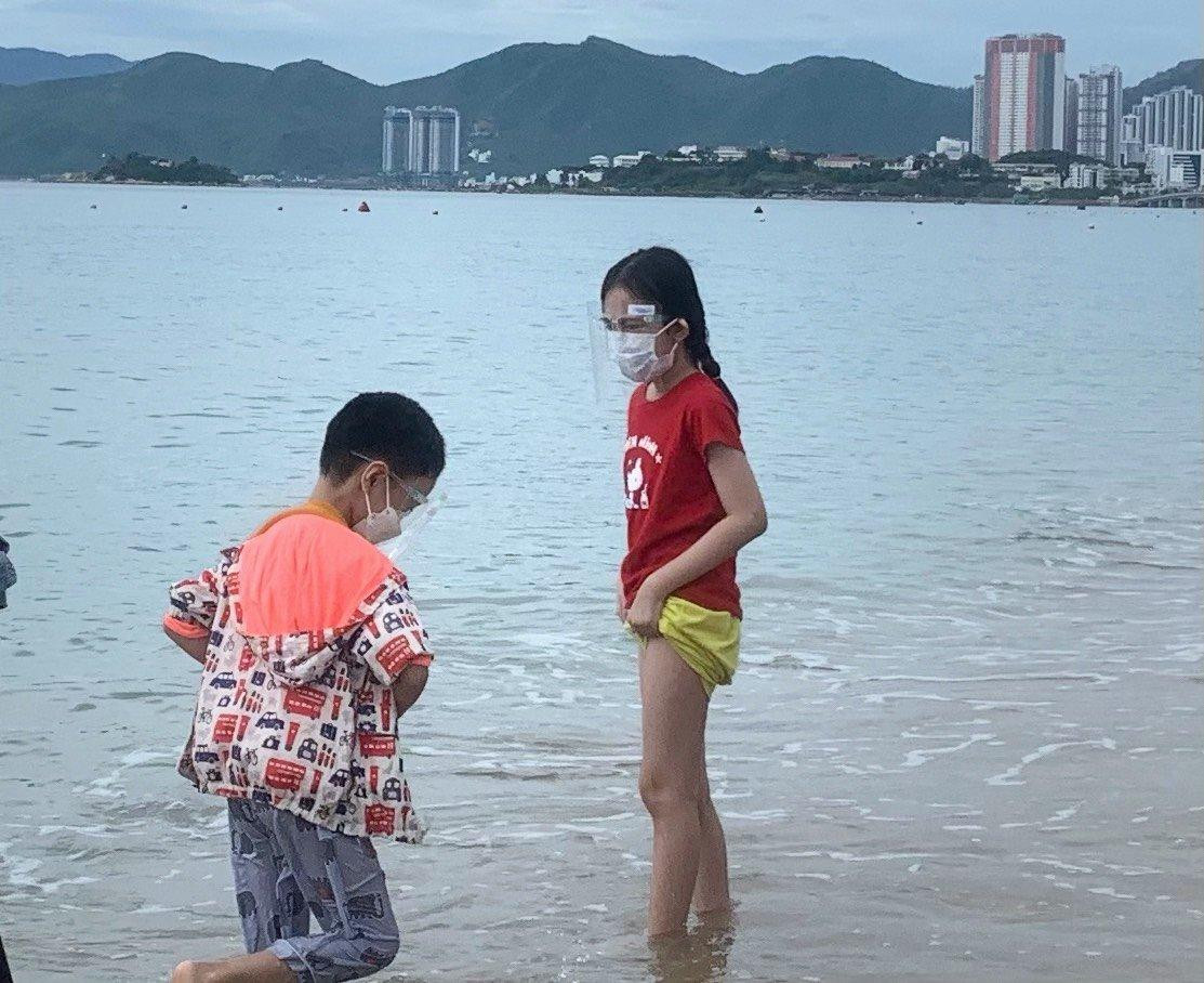 Chị Huỳnh Thanh Thảo (30 tuổi, TP. Nha Trang), cho biết: “Nghe tin được tắm biển, hai cháu nhà tôi đã háo hức xin mẹ dẫn đi từ hôm qua. Chúng đã dậy đi từ rất sớm, ra tới biển hai anh em vui mừng, hò reo như được tặng quà”. Để phòng dịch COVID-19, người dân nơi đây không tụ tập quá 5 người và thực hiện quy tắc 5K. Tuy nhiên, vẫn còn một số người gỡ khẩu trang khi đi xuống biển.