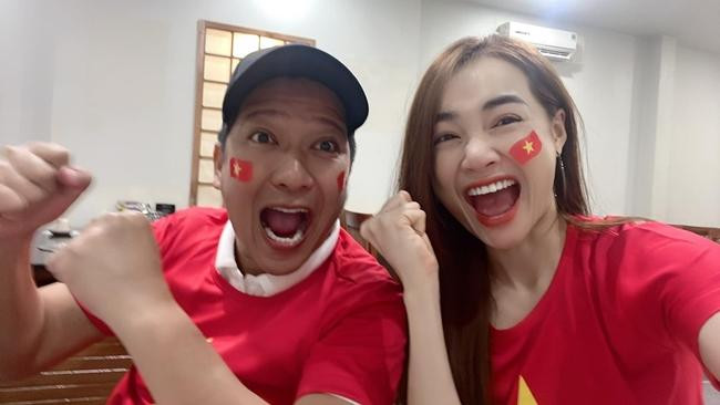 Còn vợ chồng Nhã Phương - Trường Giang khiến nhiều người ghen tị khi ngọt ngào ở bên nhau xem bóng đá và cùng vui vẻ ăn mừng chiến thắng.