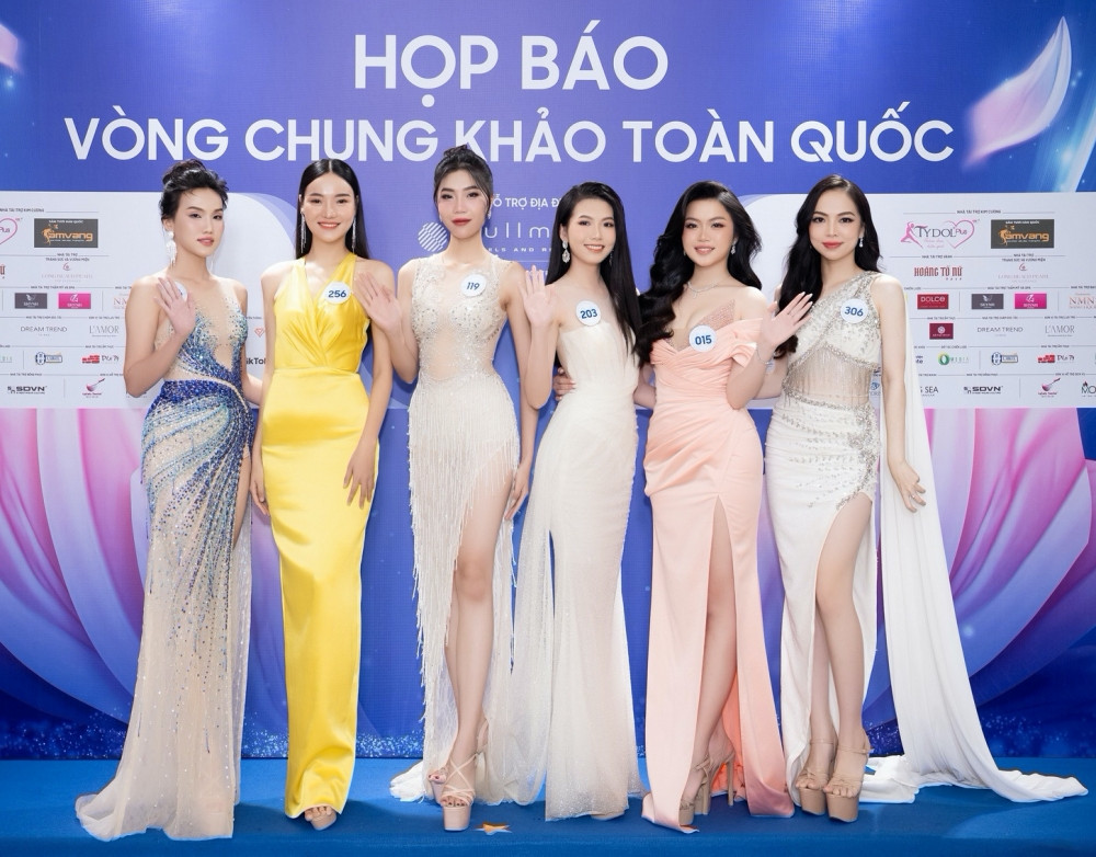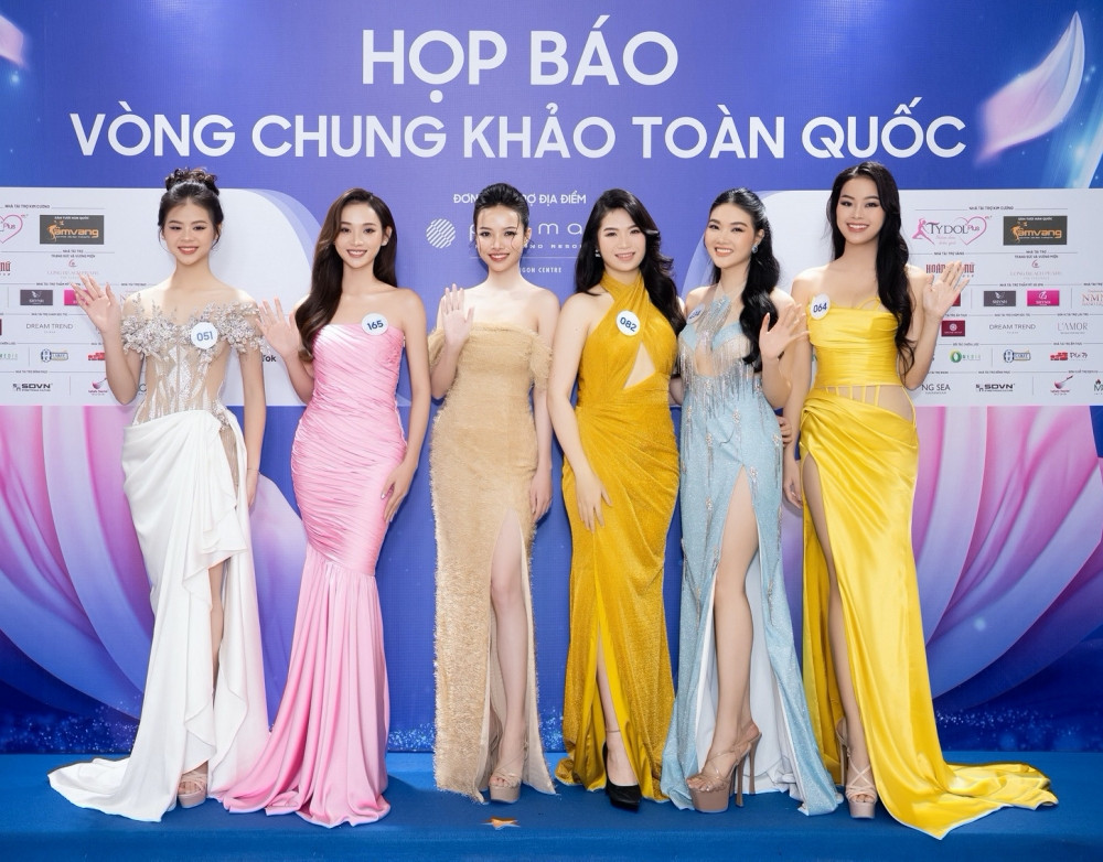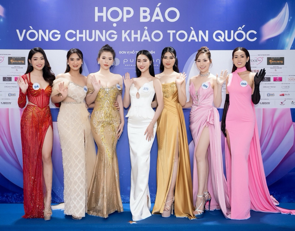 Trong buổi họp báo ra mắt 59 thí sinh vòng Chung khảo, các cô gái đã có cơ hội diện thiết kế dạ hội xuất hiện trước truyền thông. Có không ít thí sinh là những gương mặt quen thuộc từng nhiều lần đi thi nhan sắc.