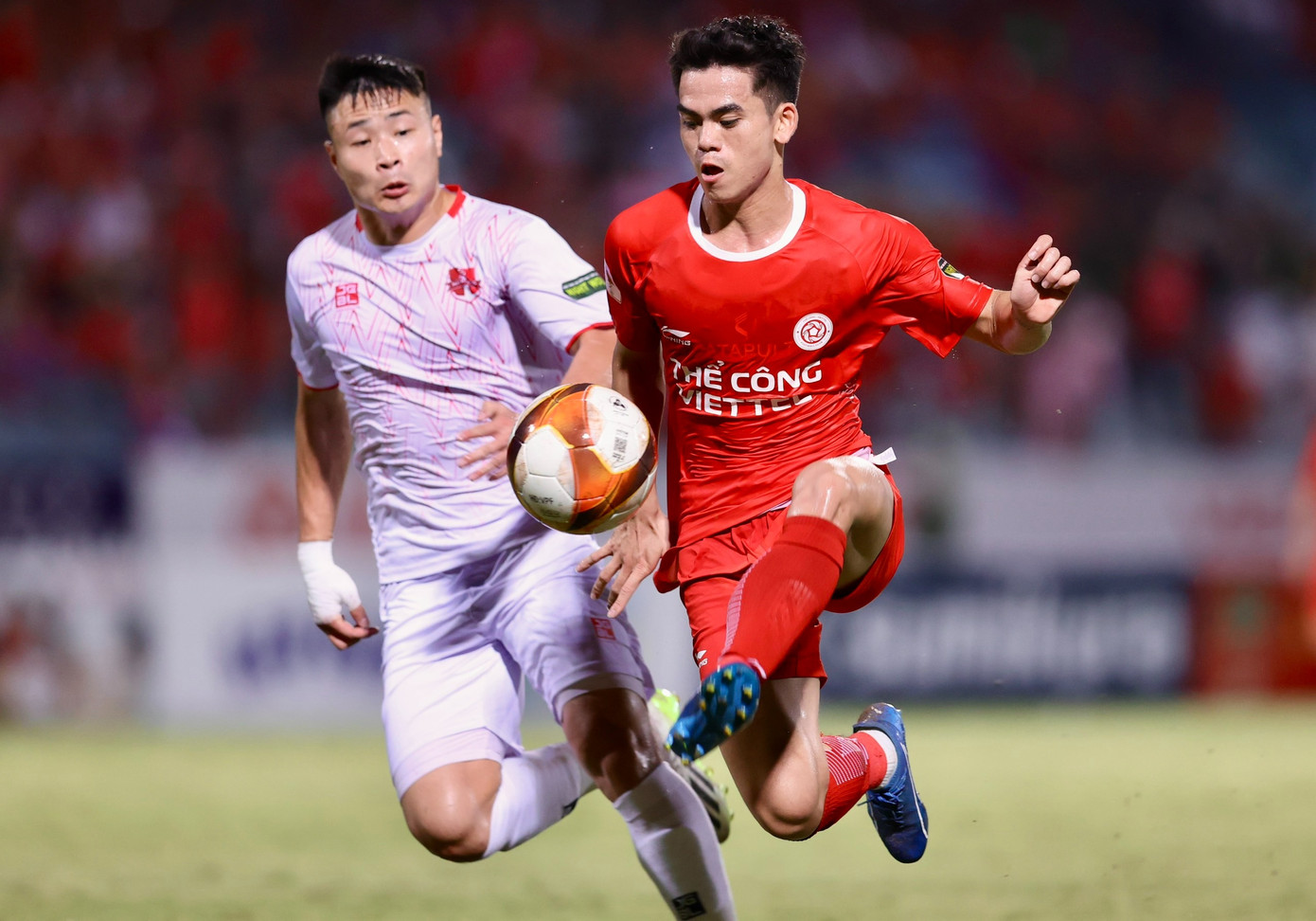 Phút 1: Trọng tài chính Nguyễn Viết Duẩn đã nổi hồi còi, bắt đầu trận đấu thuộc vòng 4 LPBank V-League 2024/25 giữa Hải Phòng và Thể Công Viettel trên sân Lạch Tray.