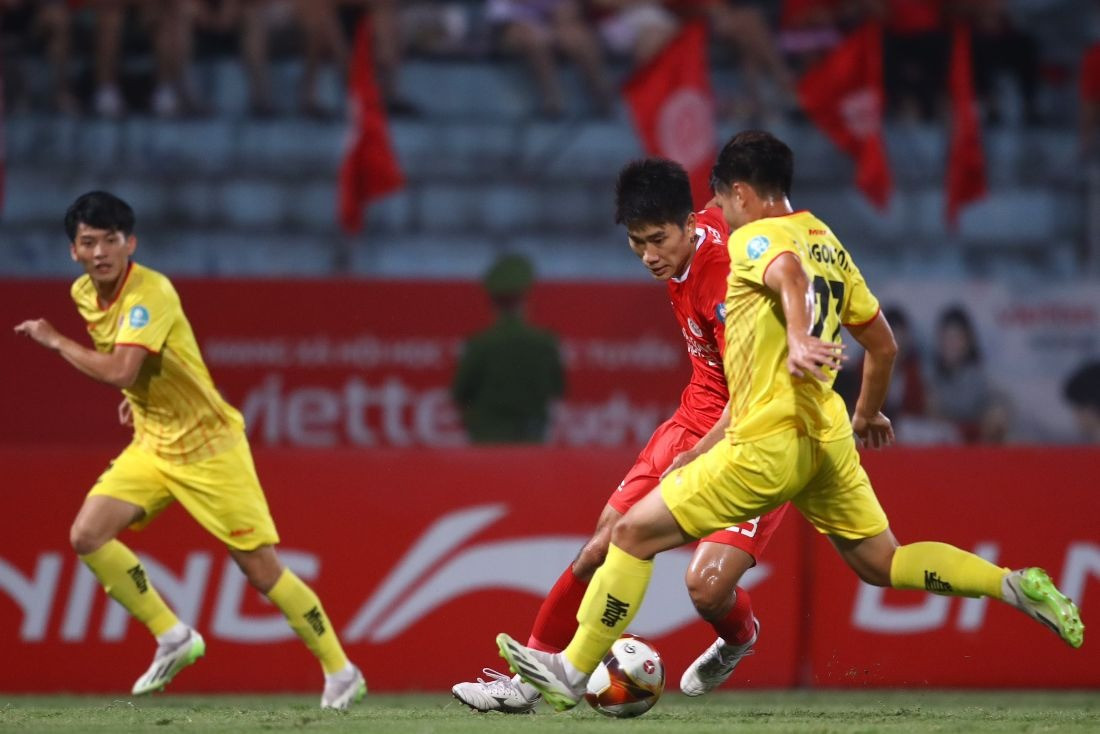 Phút 50: Sau đường chuyền bằng đầu của Minh Tùng, Danh Trung ngả người volley nhưng bóng đi chệch cột dọc.