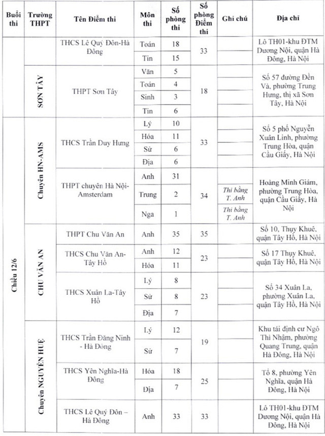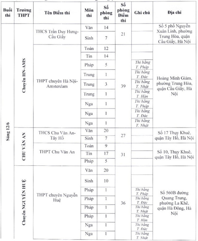 | Danh sách 17 điểm thi vào lớp 10 chuyên ở Hà Nội. |