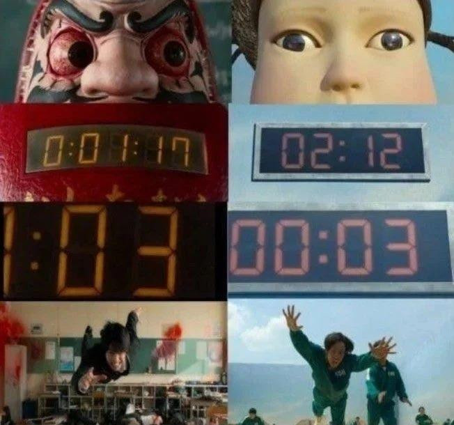 Cụ thể, trong Squid Game, trò chơi đầu tiên là “Đèn đỏ, đèn xanh” được quản trò bởi một con búp bê rô-bốt khổng lồ. Khi búp bê quay lưng lại, người chơi phải vận dụng thời cơ để tiến về vạch đích. Nhưng khi búp bê quay đầu đối mặt, người chơi phải giữ mình bất động, nếu không sẽ bị xử thua cuộc.