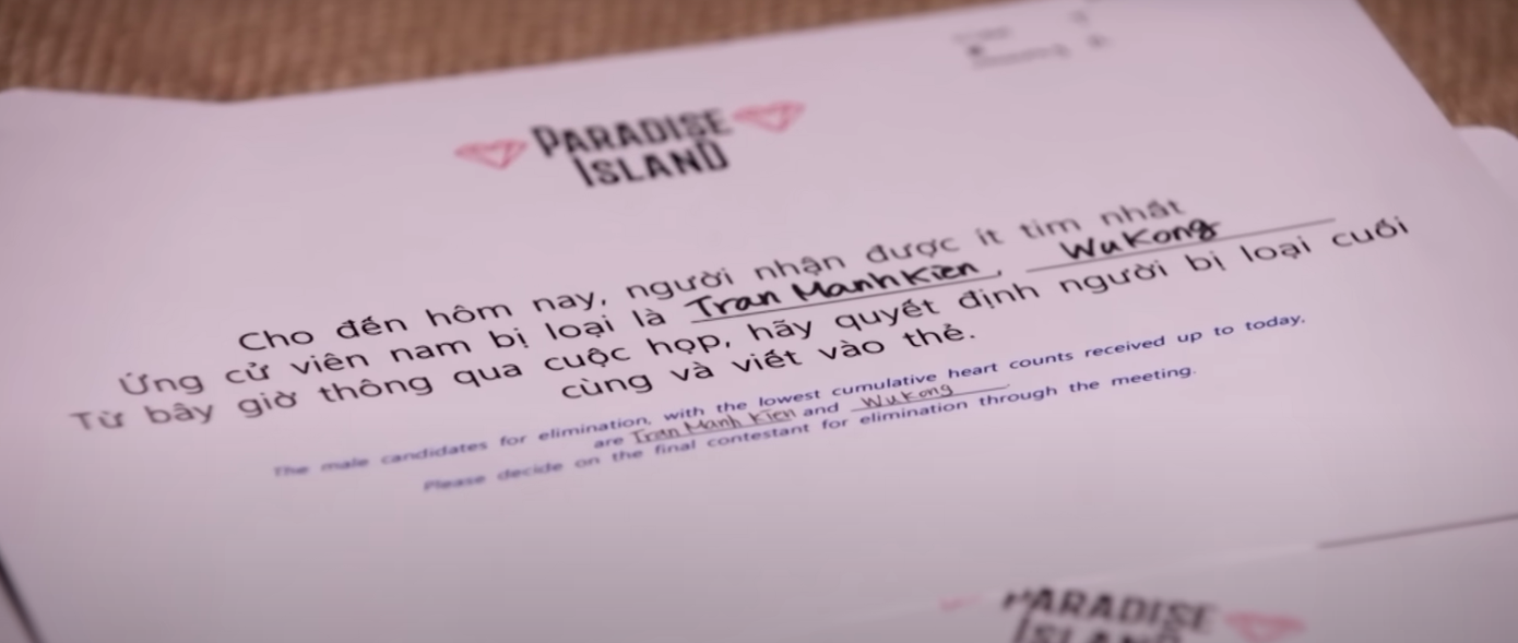 Tuy nhiên, thái độ nghiêm túc của Mạnh Kiên đôi khi biến anh đóng vai người tuyển dụng lúc nào không hay. Bộ câu hỏi về kế hoạch trong 3-5 năm tới, công việc hay cuốn sách Ra Yeon đang đọc được đặt ra liên tiếp khiến không khí tại buổi hẹn mất đi phần nào sự lãng mạn. Tình tiết này được bàn tán nhiều trên mạng giúp Mạnh Kiên giữ vững vị trí "ông hoàng meme" (meme: ảnh chế) của Đảo Thiên Đường.