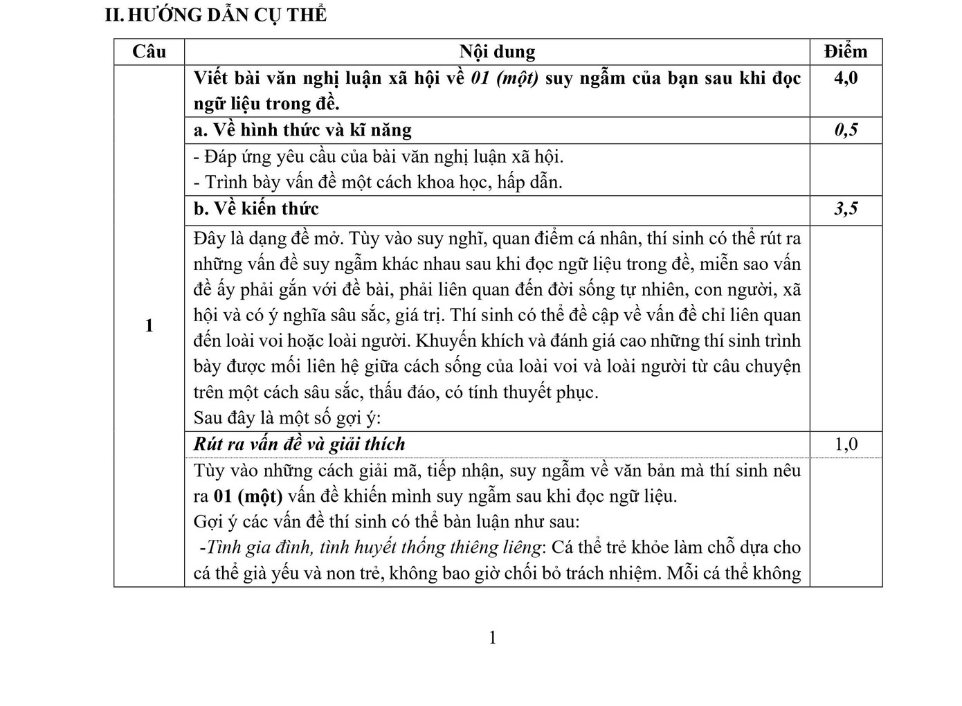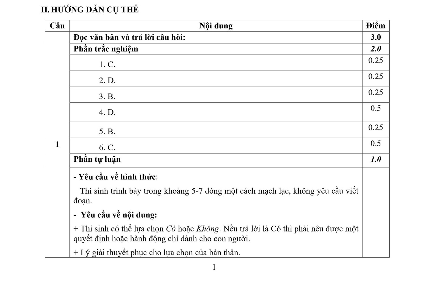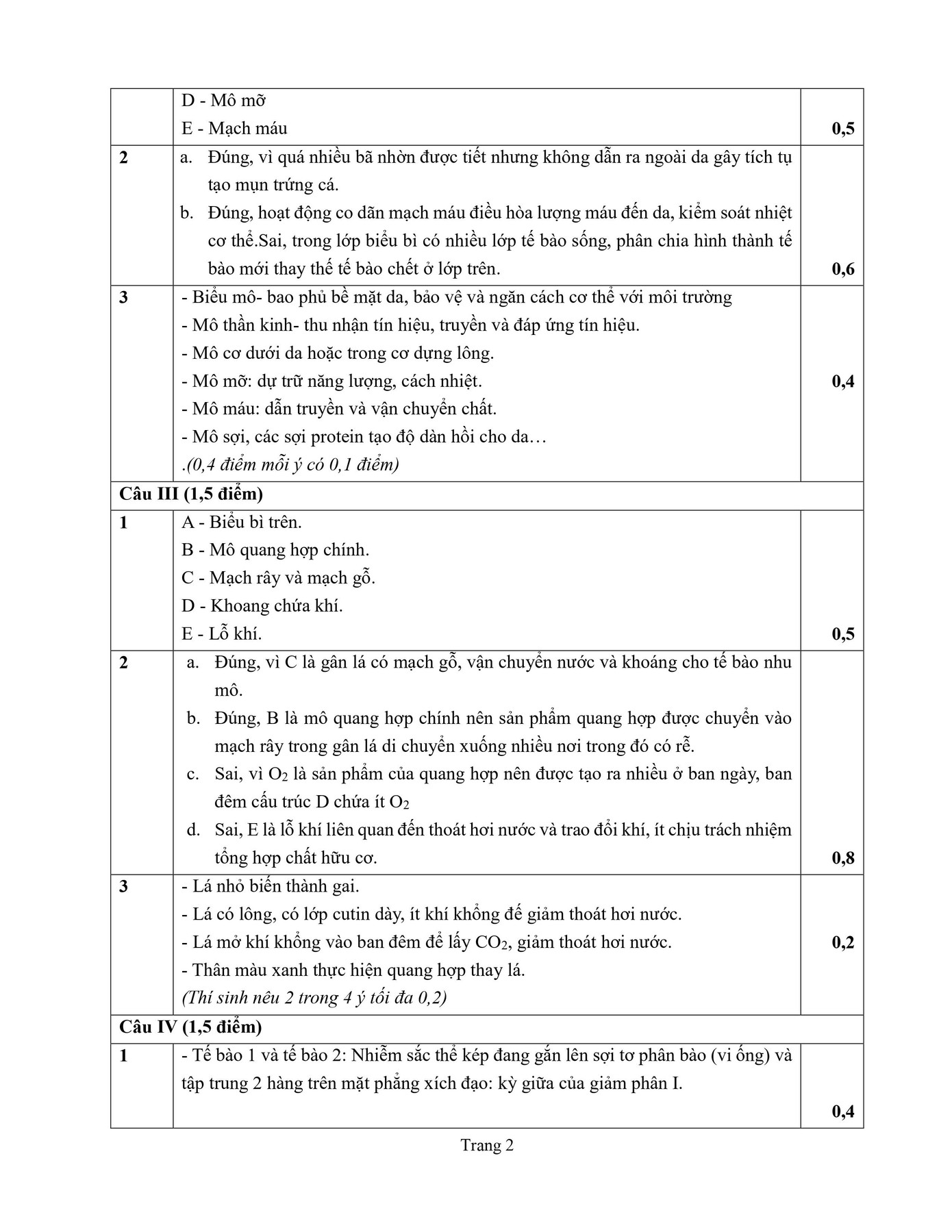 - Nếu thí sinh có đáp án khác và hợp lý/đúng thì vẫn cho trọn điểm.