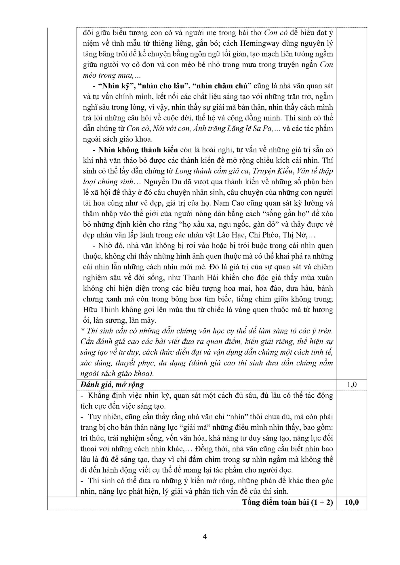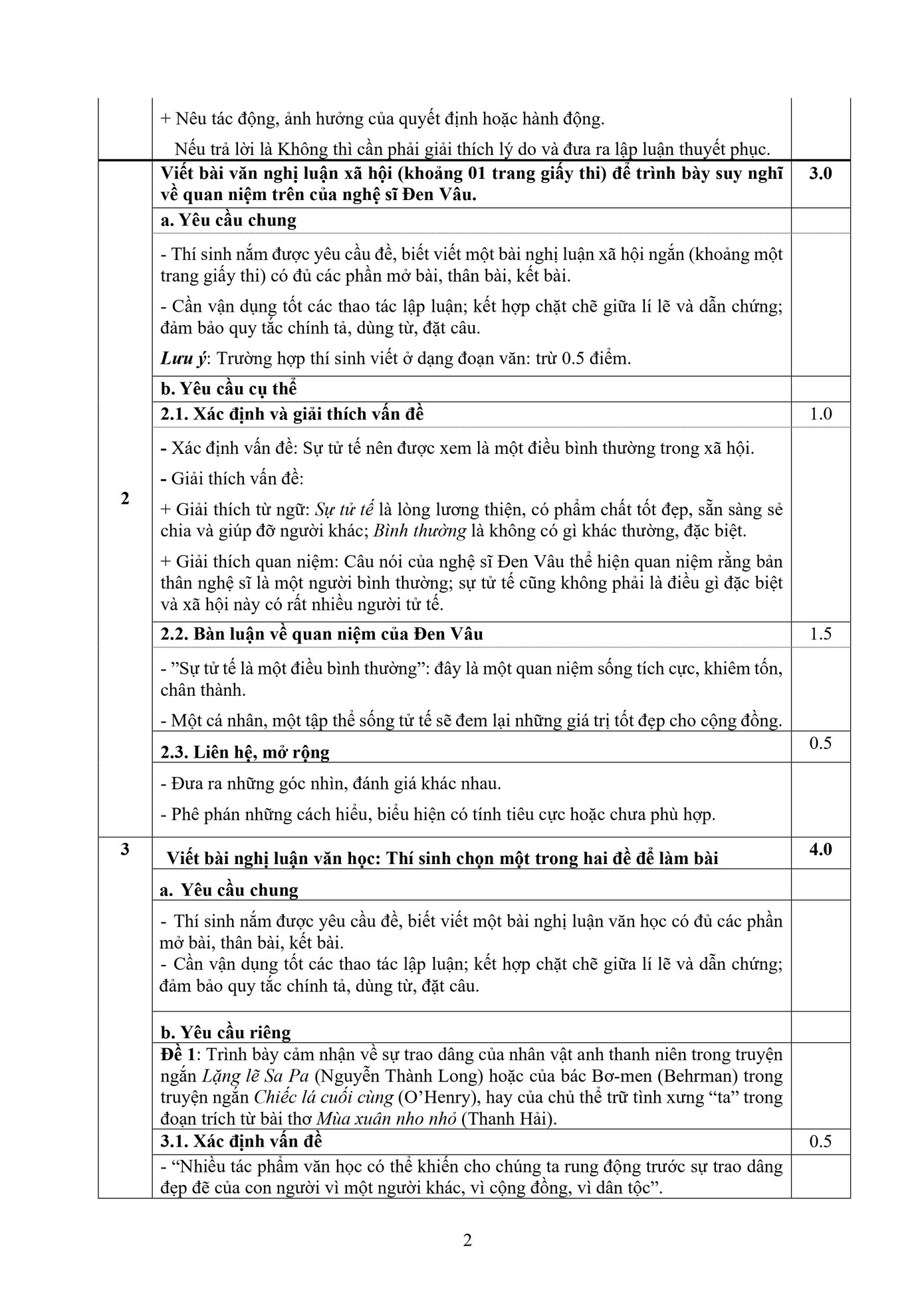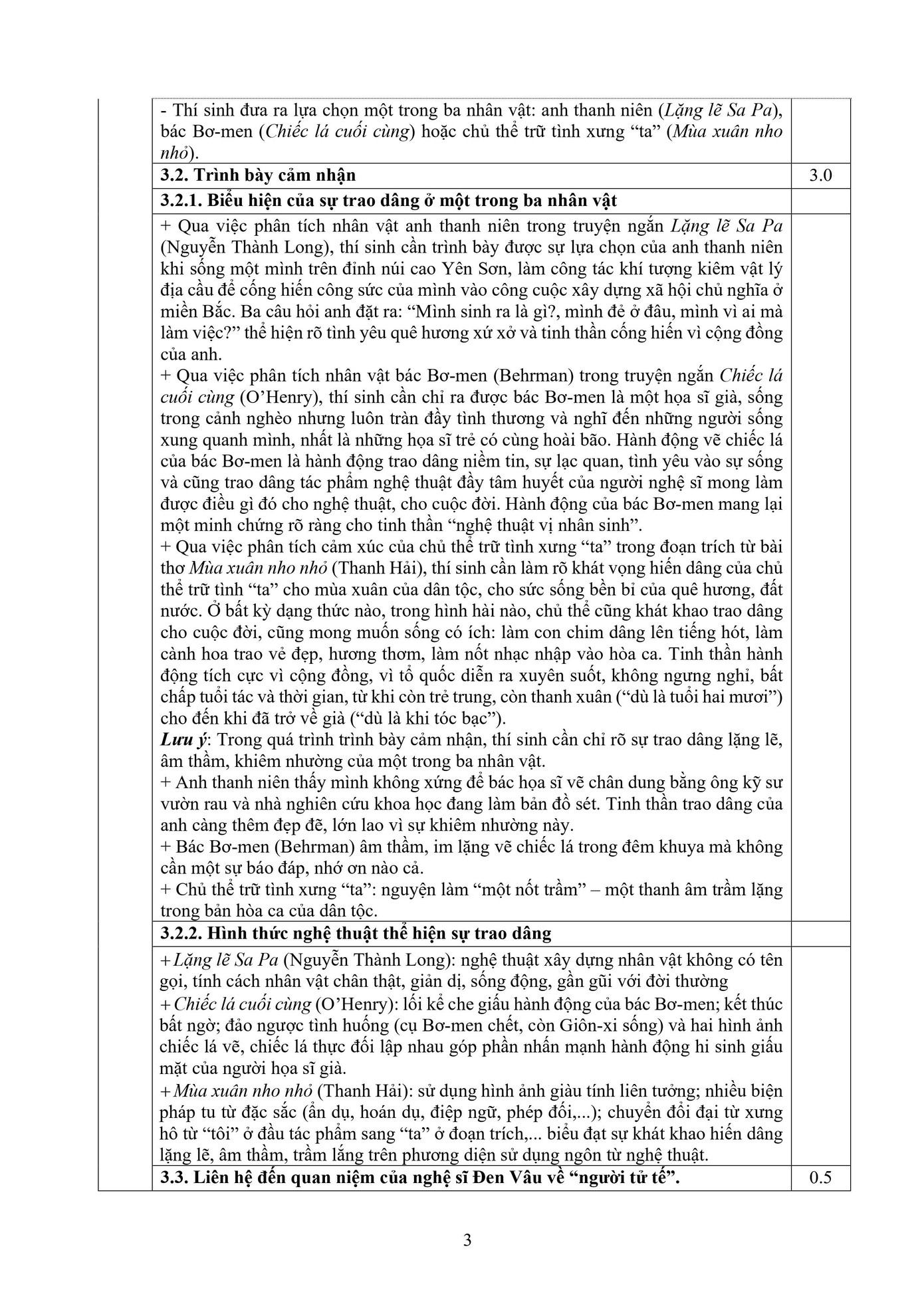 - Nếu thí sinh có đáp án khác và hợp lý/đúng thì vẫn cho trọn điểm.