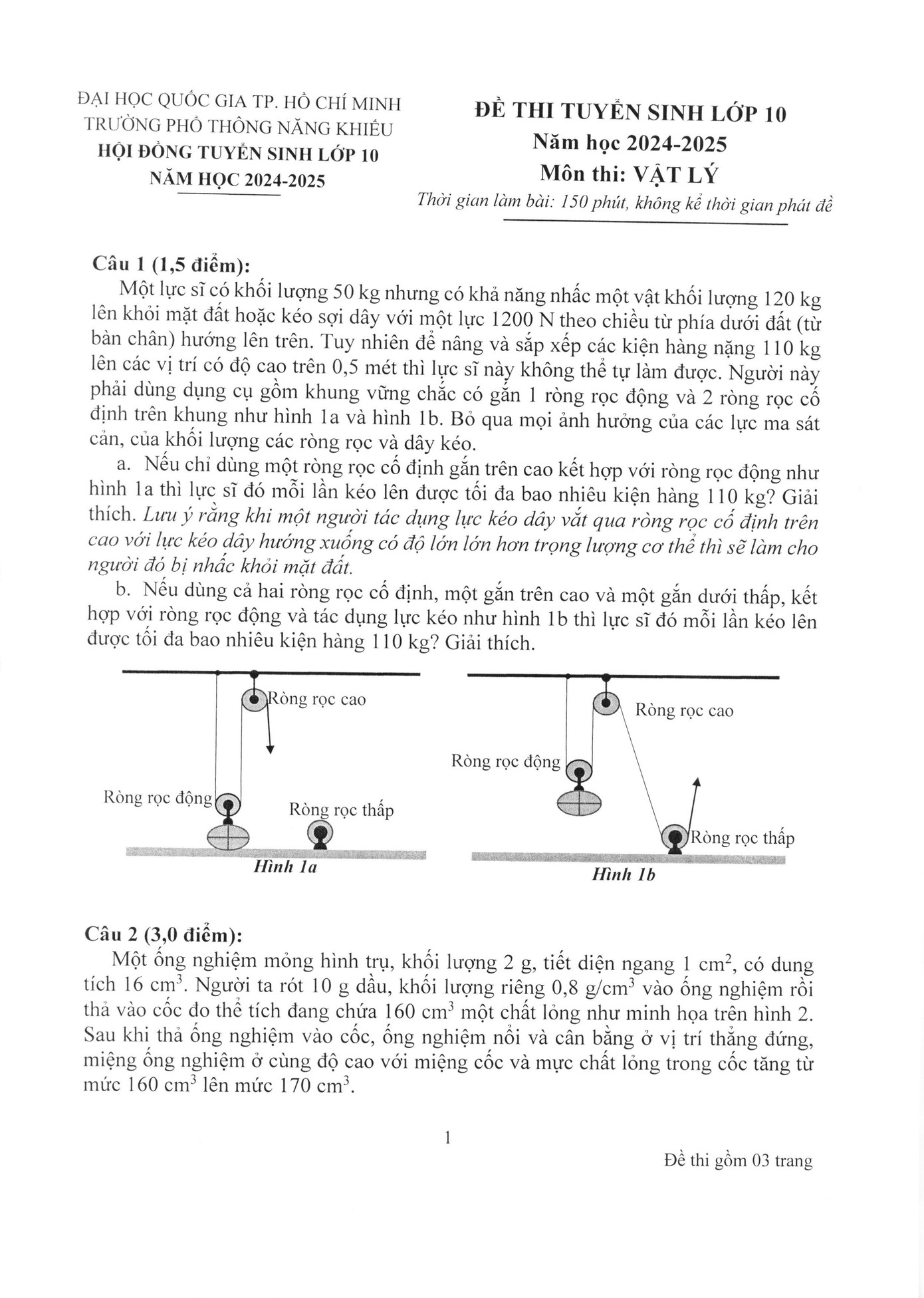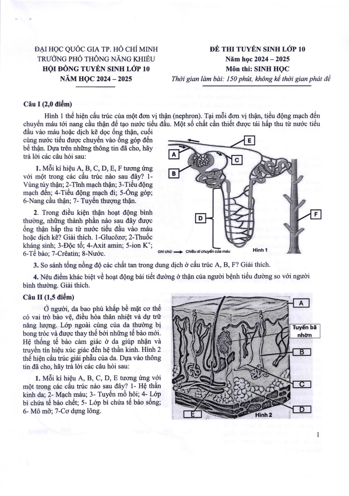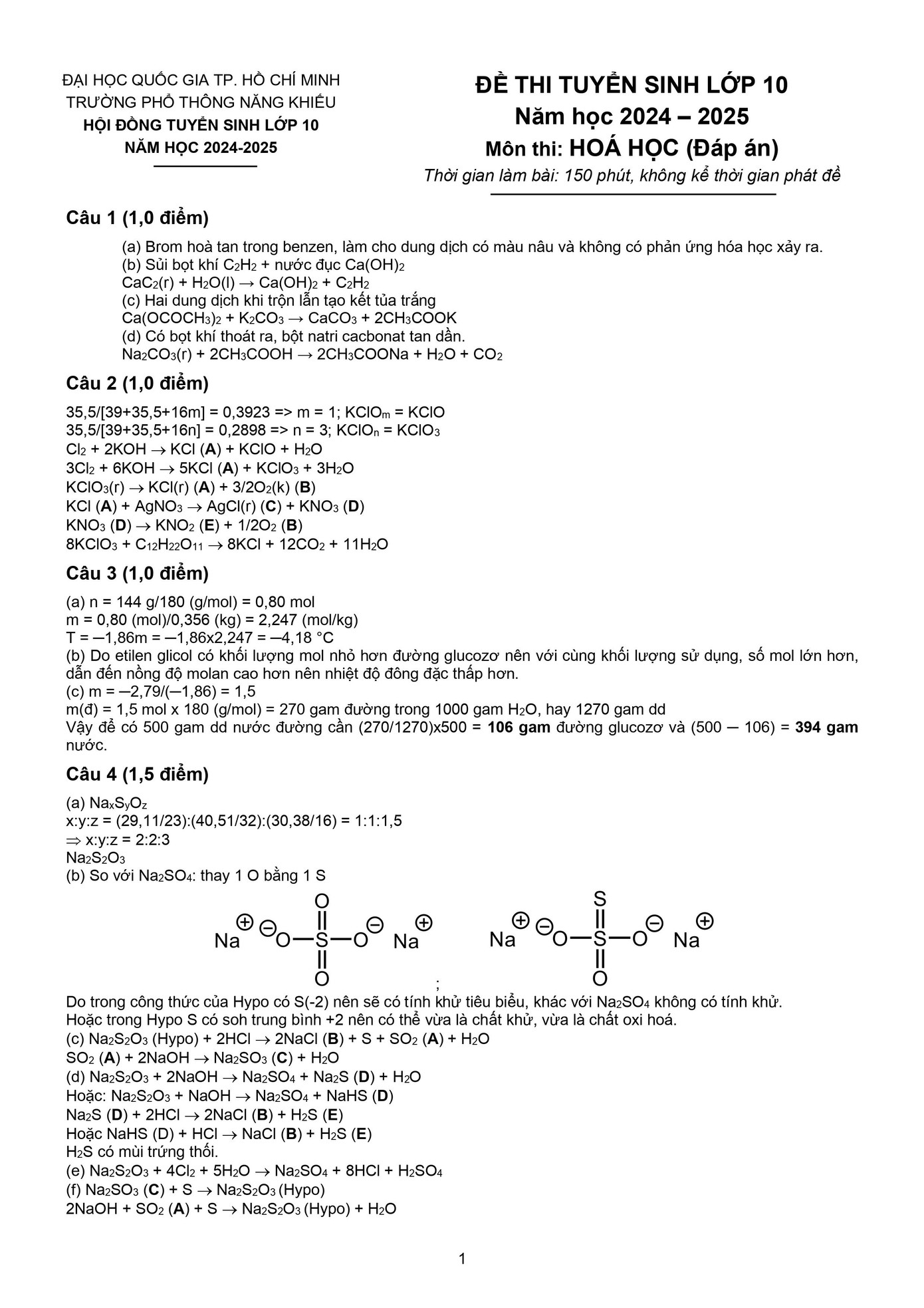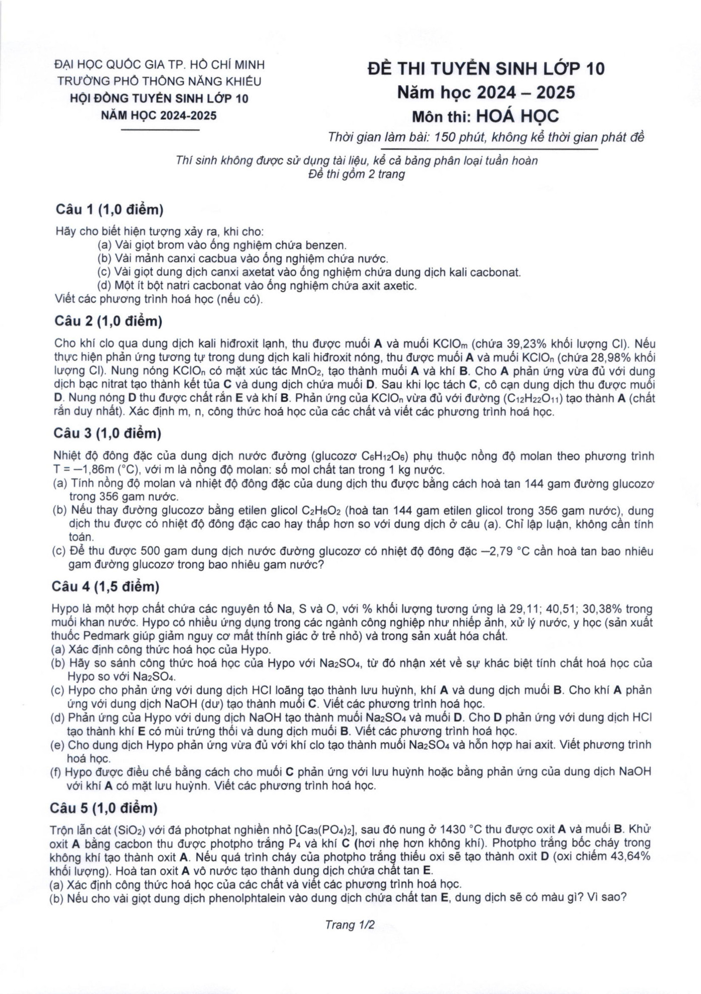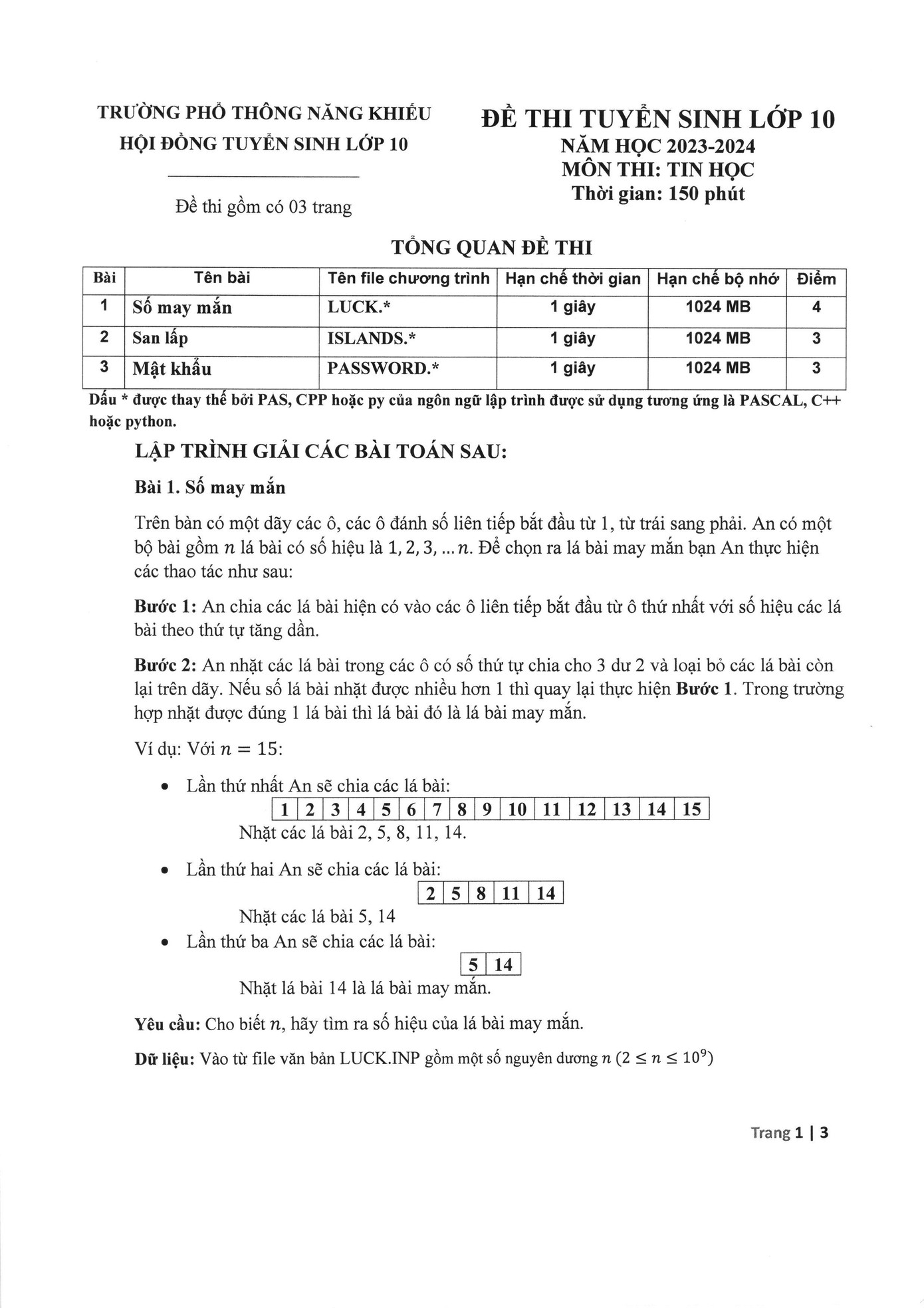 Hội đồng tuyển sinh lớp 10 của trường Phổ thông Năng khiếu (ĐHQG TP.HCM) đã công bố đáp án chính thức cho các môn thi của kỳ thi tuyển sinh vào lớp 10, năm học 2024 - 2025. 7 môn thi bao gồm: Toán (chuyên và không chuyên), Ngữ Văn (chuyên và không chuyên), Tiếng Anh (chuyên và không chuyên), Vật Lí, Hóa Học, Sinh Học và Tin Học.