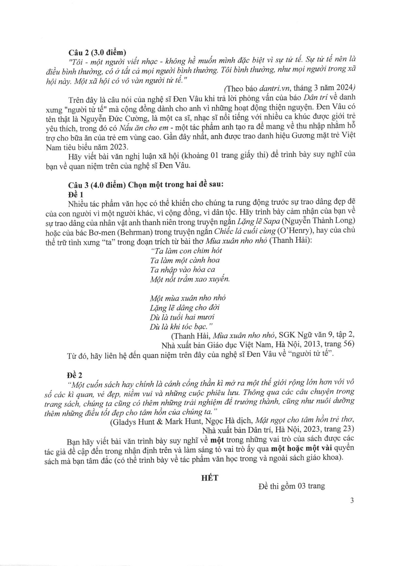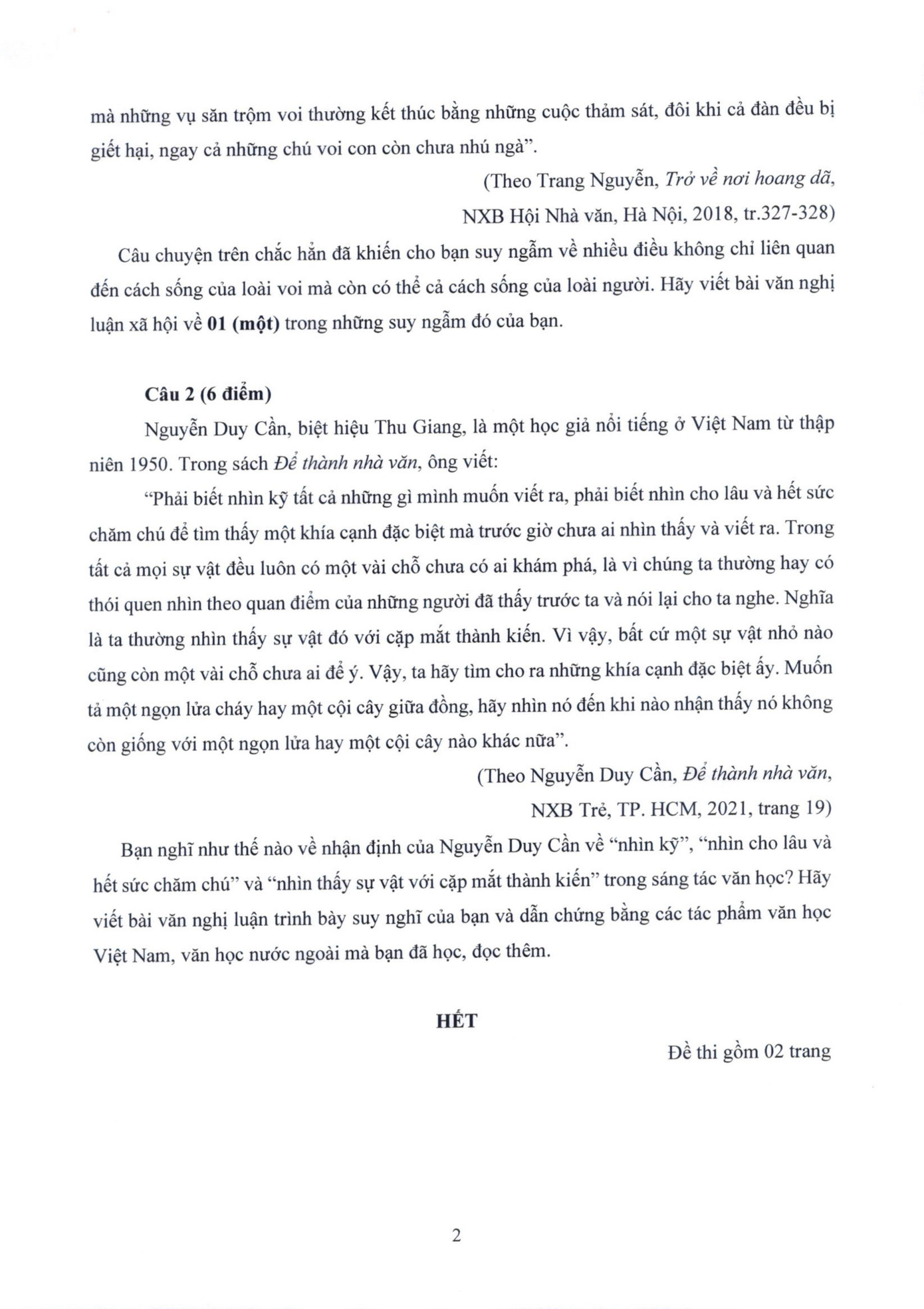Đề thi môn Ngữ Văn (không chuyên) đánh giá hiểu biết và kỹ năng làm bài của các thí sinh một cách toàn diện thông qua bộ 3: Đọc hiểu - nghị luận xã hội - nghị luận văn học.