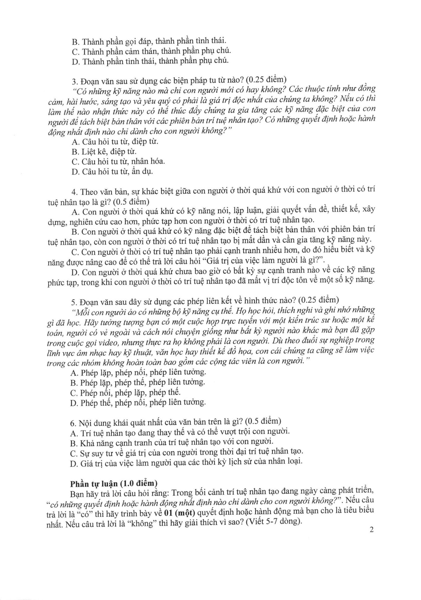 - Các câu trả lời không tuân thủ theo hướng dẫn đề thi/ instructions (số lượng từ quy định tối thiểu/ tối đa, v.v...) thì không được chấm điểm.