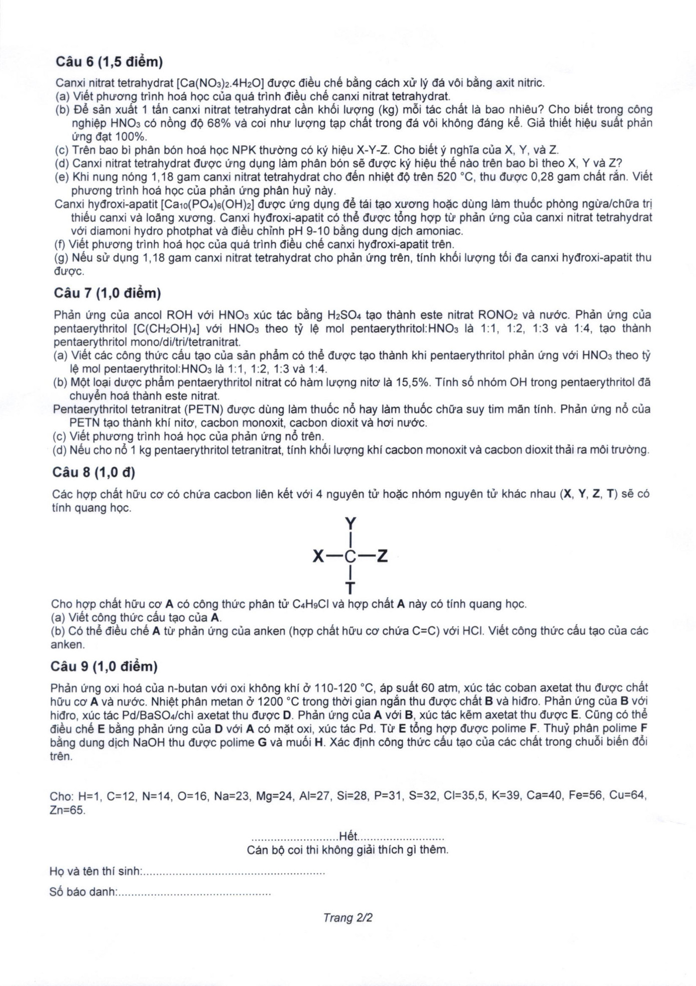 - Ký hiệu ngoặc tròn ( ) trong đáp án diễn tả các phần không bắt buộc ghi trong câu trả lời. Tuy nhiên nếu thí sinh ghi sai phần trong ( ) sẽ bị tính là sai.