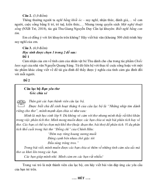 Đáp án môn Ngữ văn