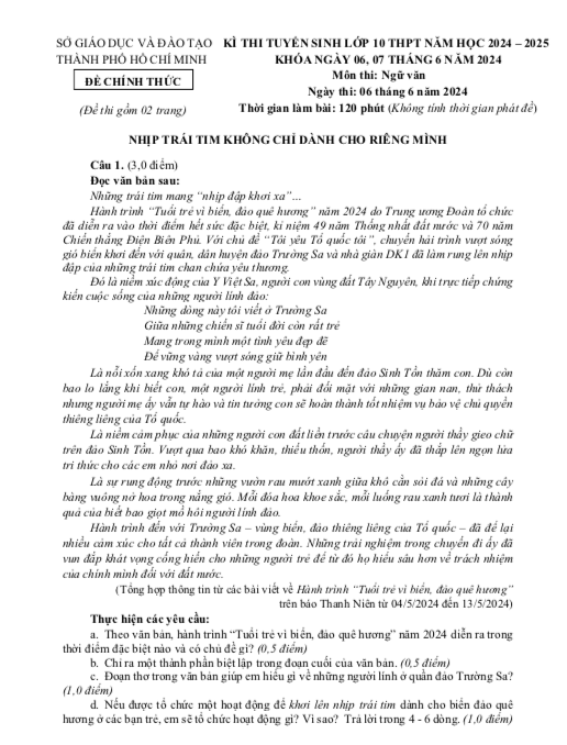Đề thi và đáp án các môn thi vào lớp 10 tại TPHCM cụ thể như sau: