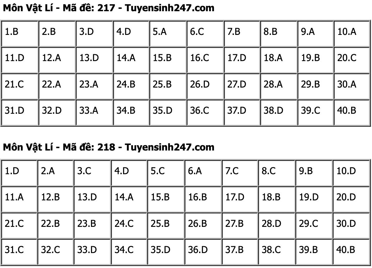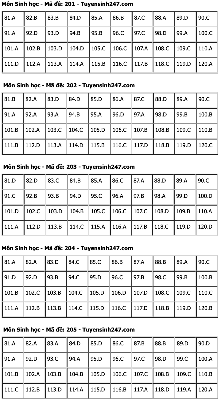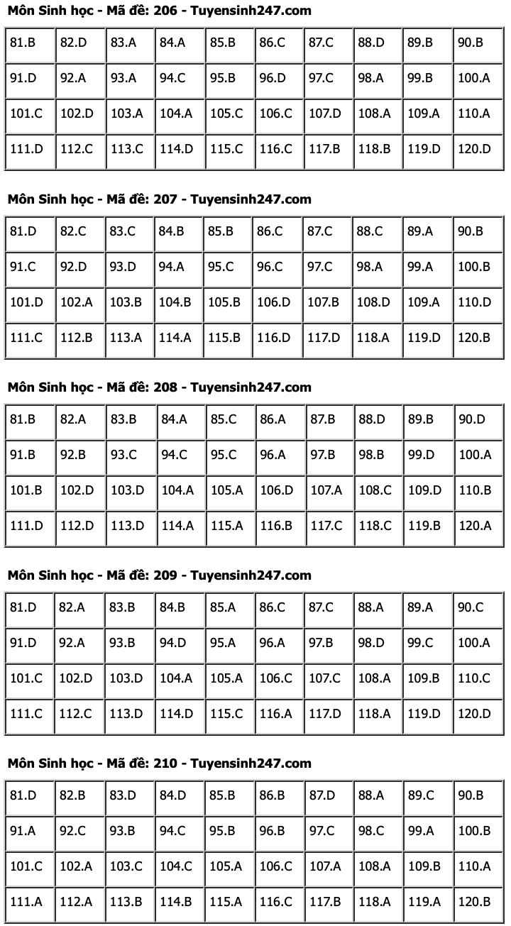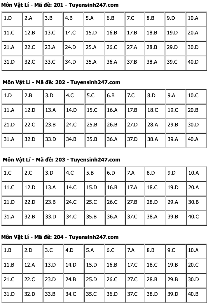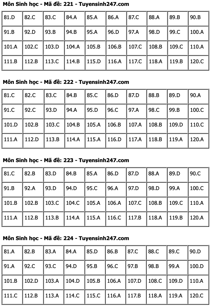 HHTO - Dưới đây là đáp án tham khảo 24 mã đề tổ hợp Khoa học tự nhiên gồm các môn Vật lí, Hoá học, Sinh học kỳ thi Tốt nghiệp THPT 2024. Mời thí sinh tham khảo.