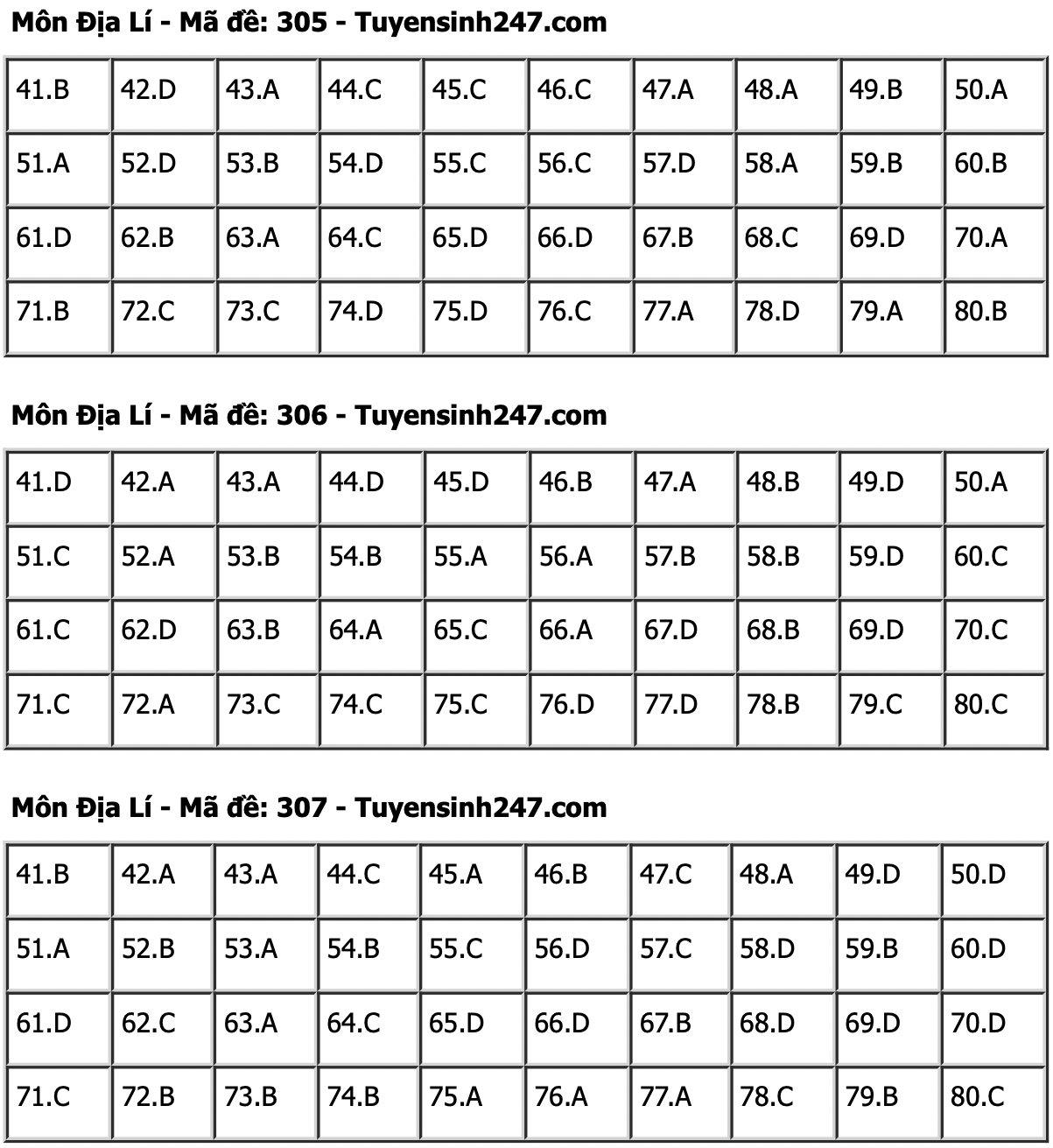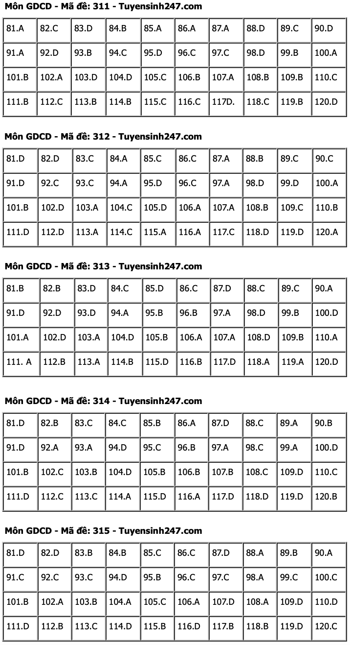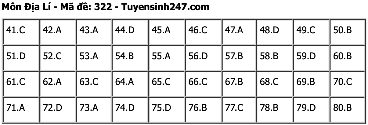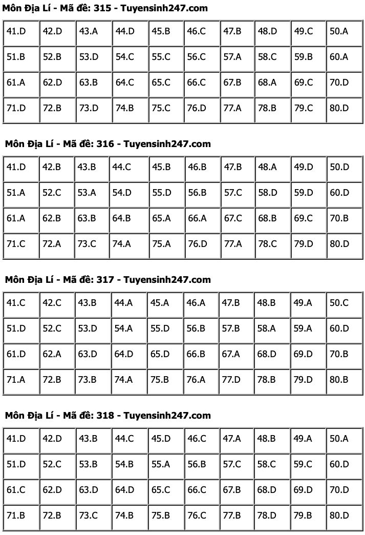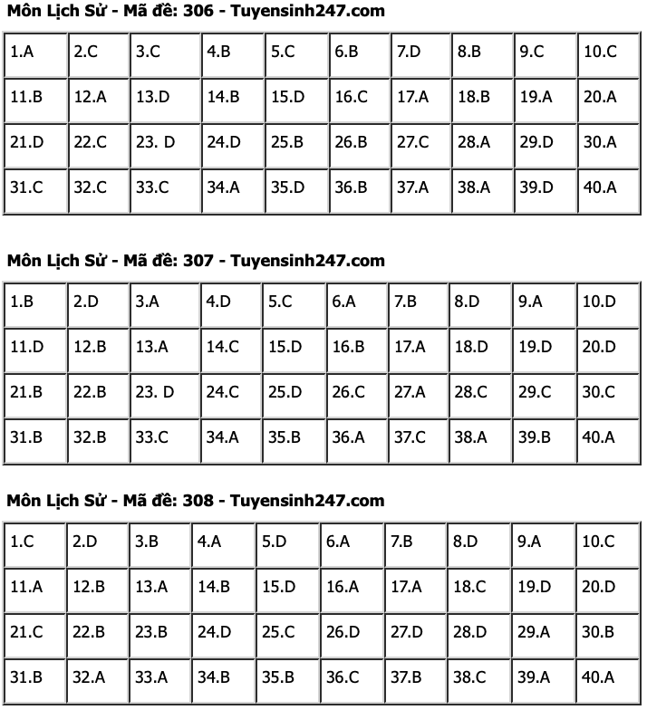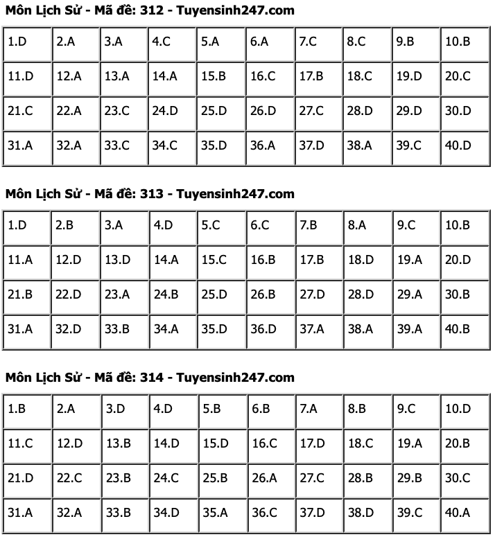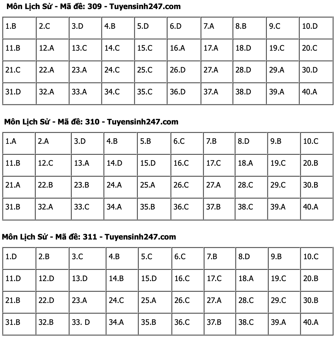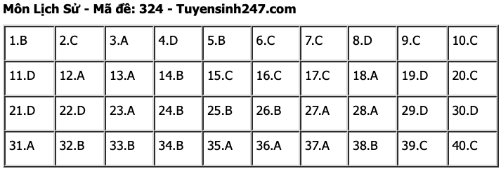 Dưới đây là đáp án tham khảo tổ hợp 3 môn Khoa học xã hội do tuyensinh247.com thực hiện, mời thí sinh tham khảo.