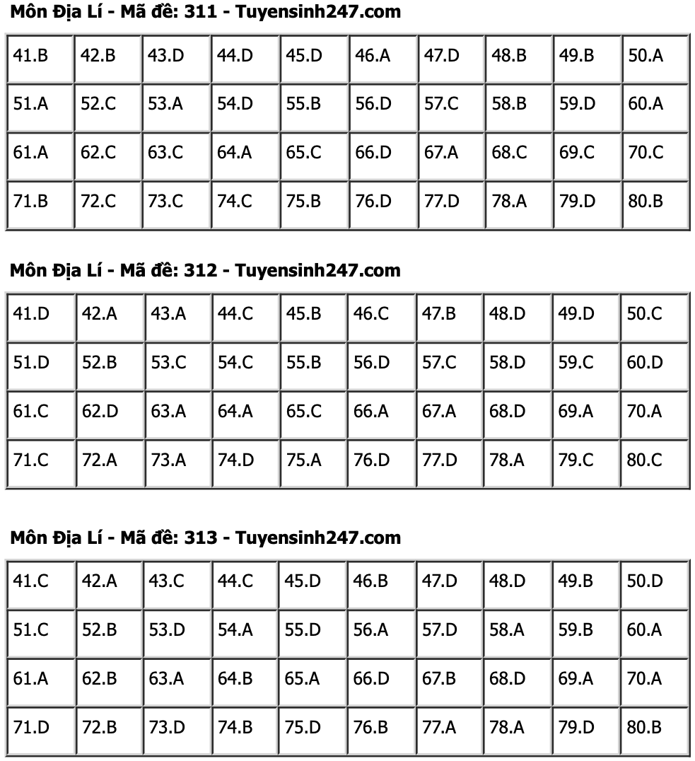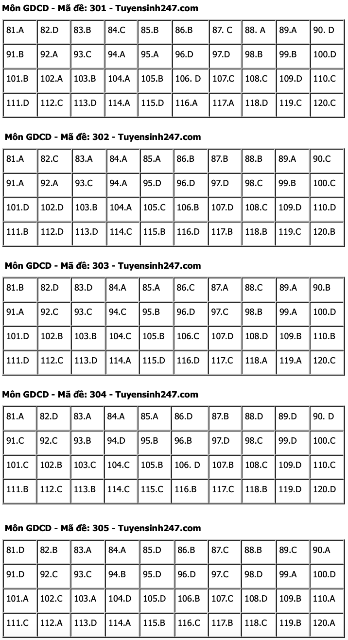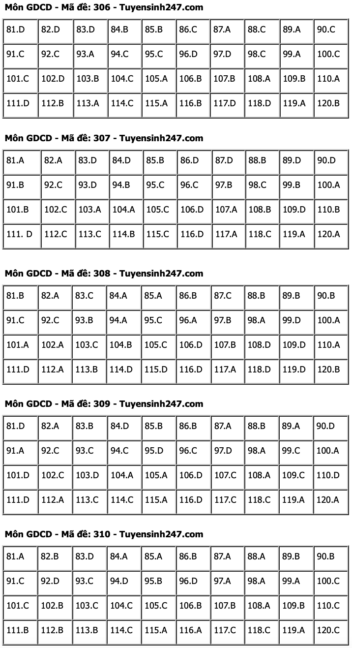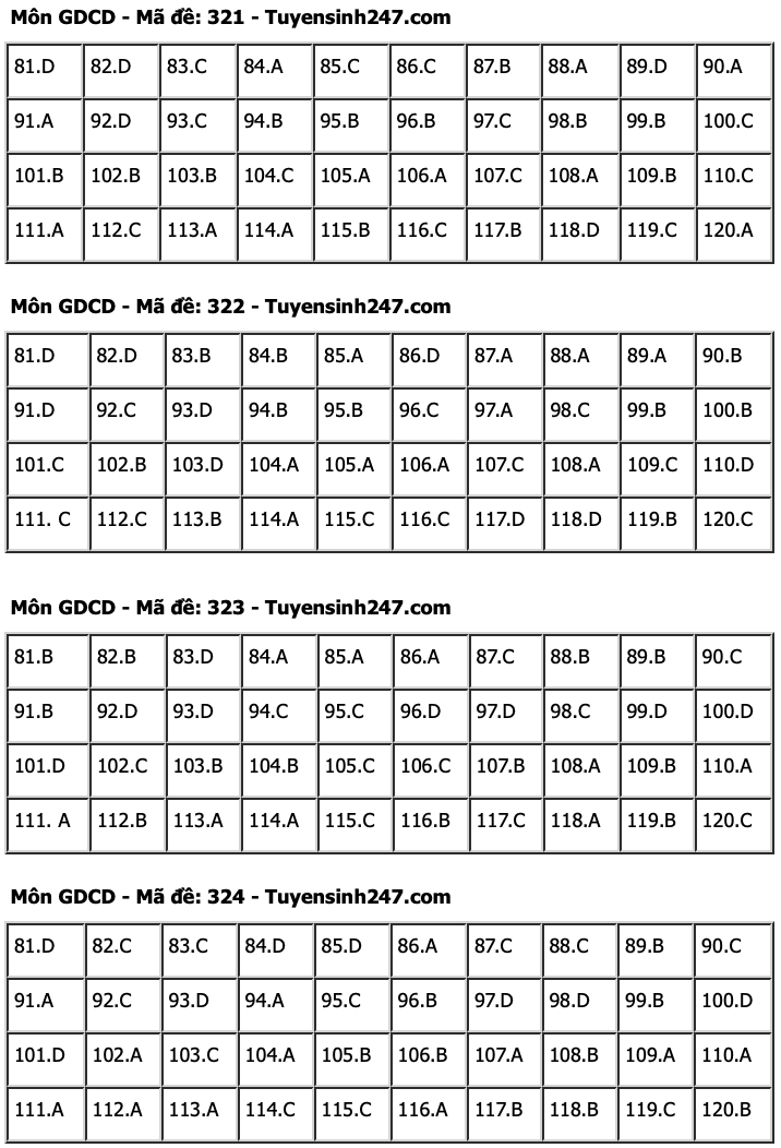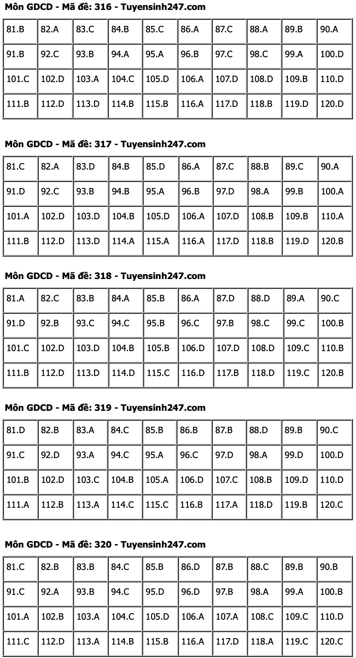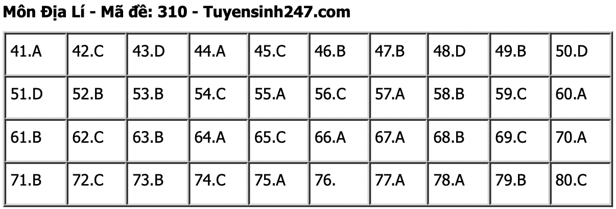 Dưới đây là đáp án tham khảo tổ hợp 3 môn Khoa học xã hội do tuyensinh247.com thực hiện, mời thí sinh tham khảo.