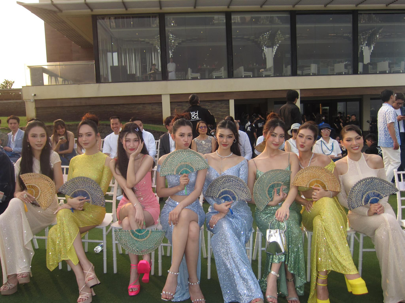 Lương Thùy Linh cùng với nhiều nàng hậu khác vừa tham dự một show thời trang. Hoa hậu Thế giới Việt Nam 2019 diện bộ váy xanh đính kim sa lấp lánh khoe vóc dáng thon thả cùng thần thái sang chảnh.