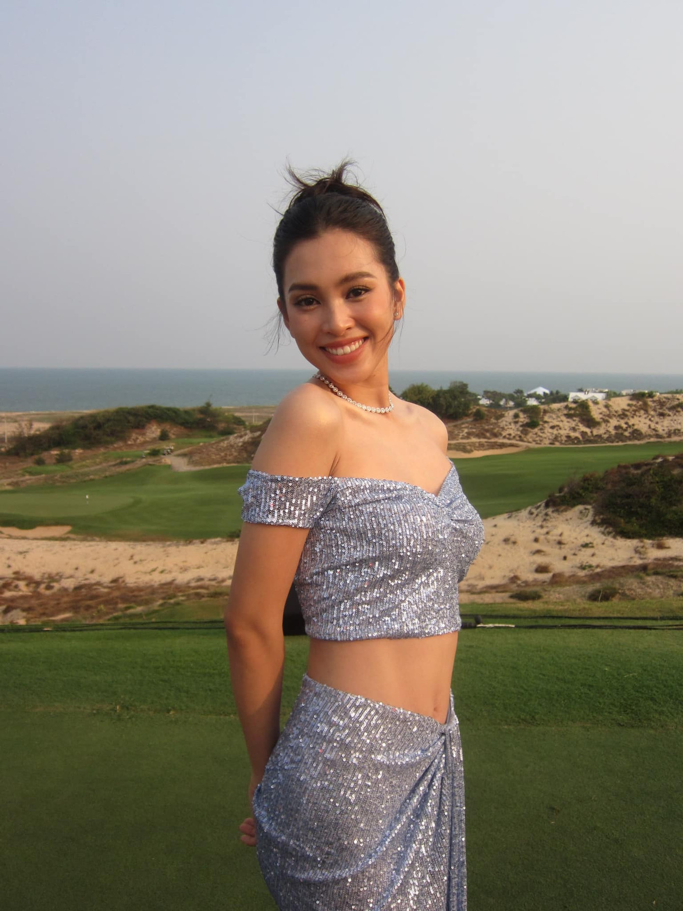 Á hậu Ngọc Hằng dịu dàng dưới ánh hoàng hôn.