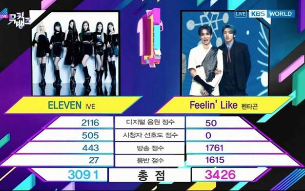 Trong tập đầu tiên sau Tết Âm lịch của chương trình âm nhạc Music Bank, đài truyền hình KBS, IVE và Pentagon đã trở thành những đề cử cho vị trí hạng nhất. Và các thành viên Pentagon đã thực sự 'vỡ òa' khi được xướng tên, mang về chiếc cúp này, với ca khúc mới nhất Feelin 'Like.