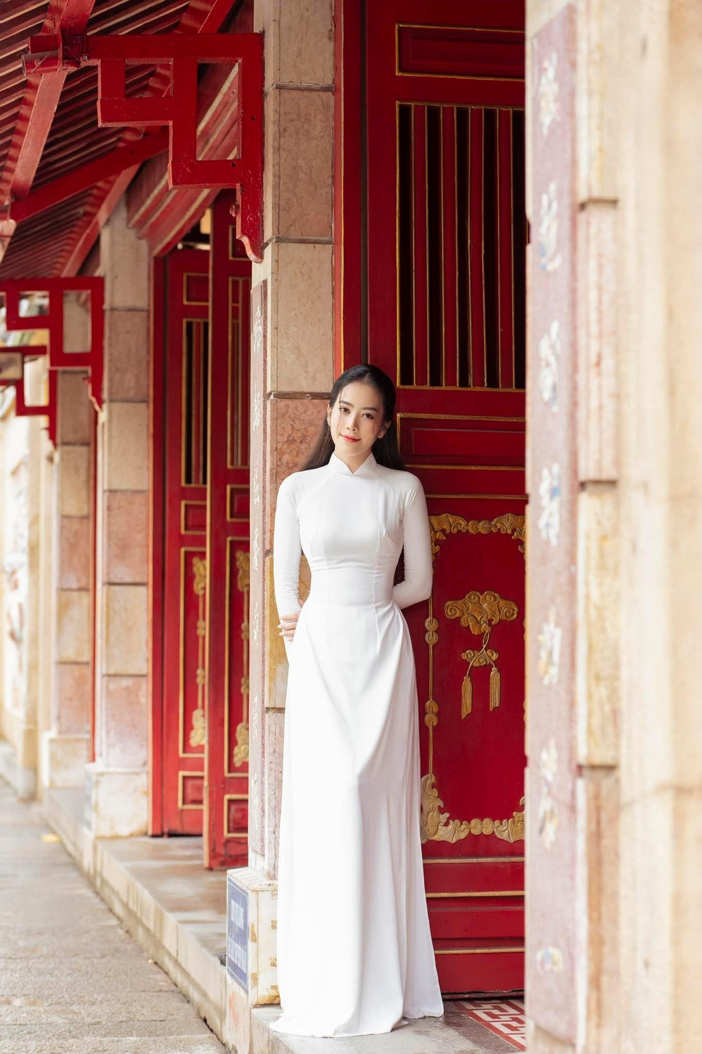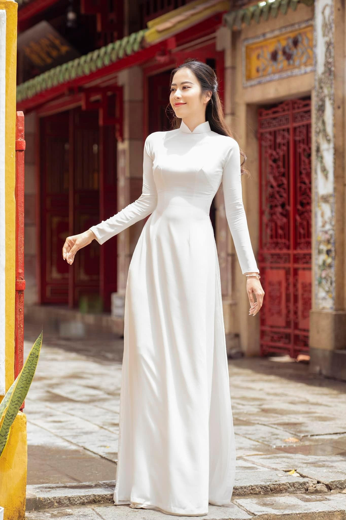 Trên trang cá nhân, Nam Em mới đăng một bộ ảnh mang đậm không khí hoài cổ. Cô diện bộ áo dài truyền thống màu trắng tinh khôi, thả tóc xõa và vấn tóc mai sang hai bên đầy nữ tính.