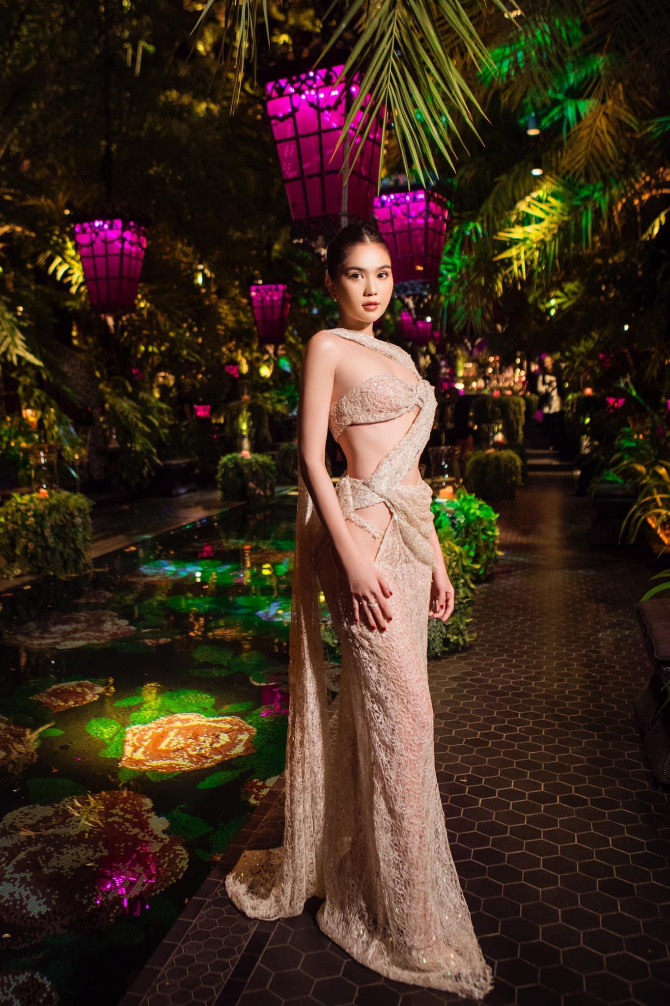 Nhưng hai trang phục phía trên vẫn chưa là gì so với chiếc váy đen cắt khoét hiểm hóc như thế này. Thiết kế đan xen giữa các dải đen và vải xuyên thấu kiểu nửa kín nửa hở khiến Ngọc Trinh tuy không lộ nhưng vẫn bị cho là quá hở hang.