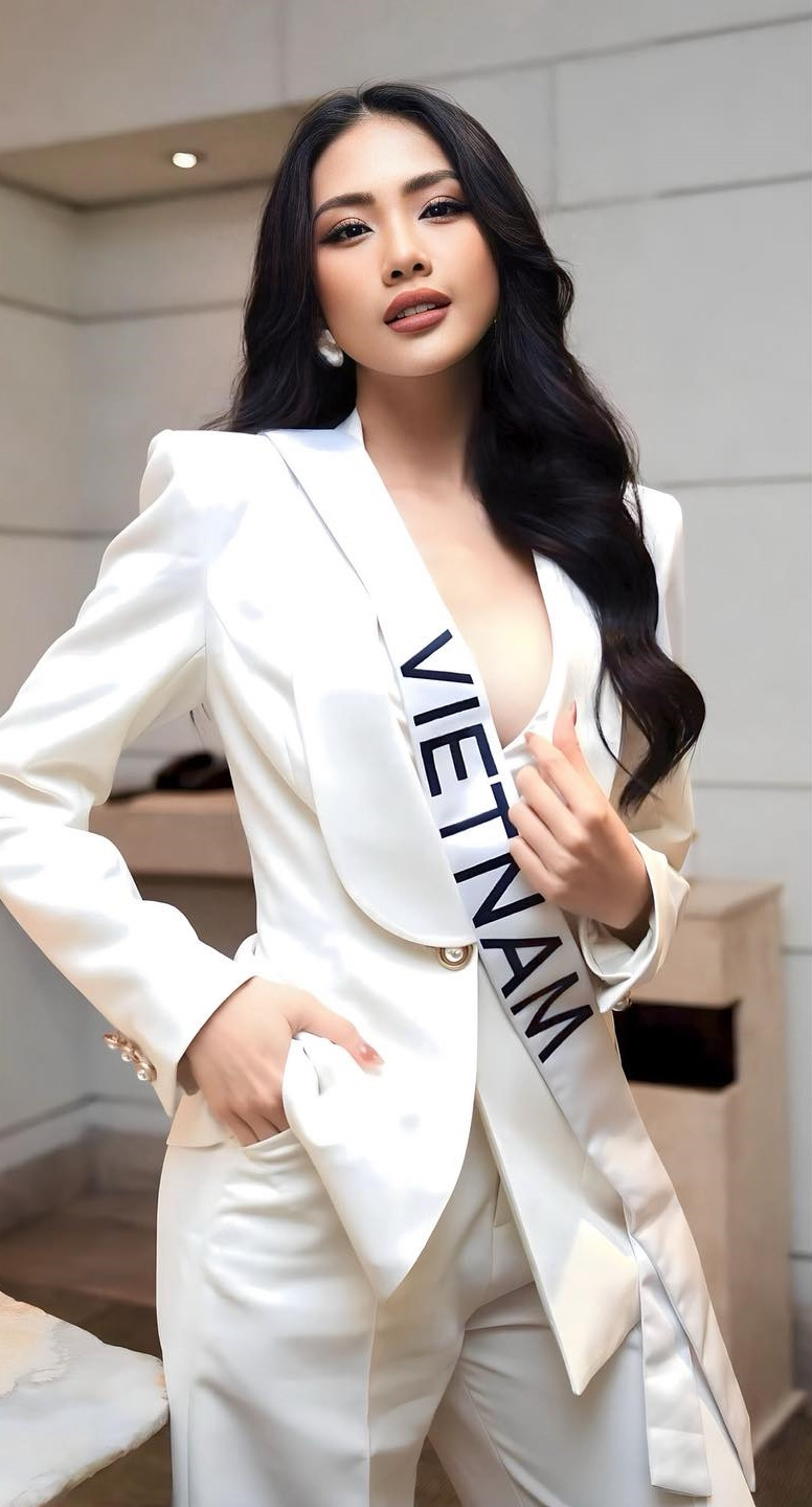 Ngoại trừ trong một vài outfit mang gam màu khác trong những ngày đầu, đa số trong các hoạt động tại Miss Universe 2023, Hoa hậu Bùi Quỳnh Hoa đều sử dụng trang phục mang hai gam màu trắng và đen.