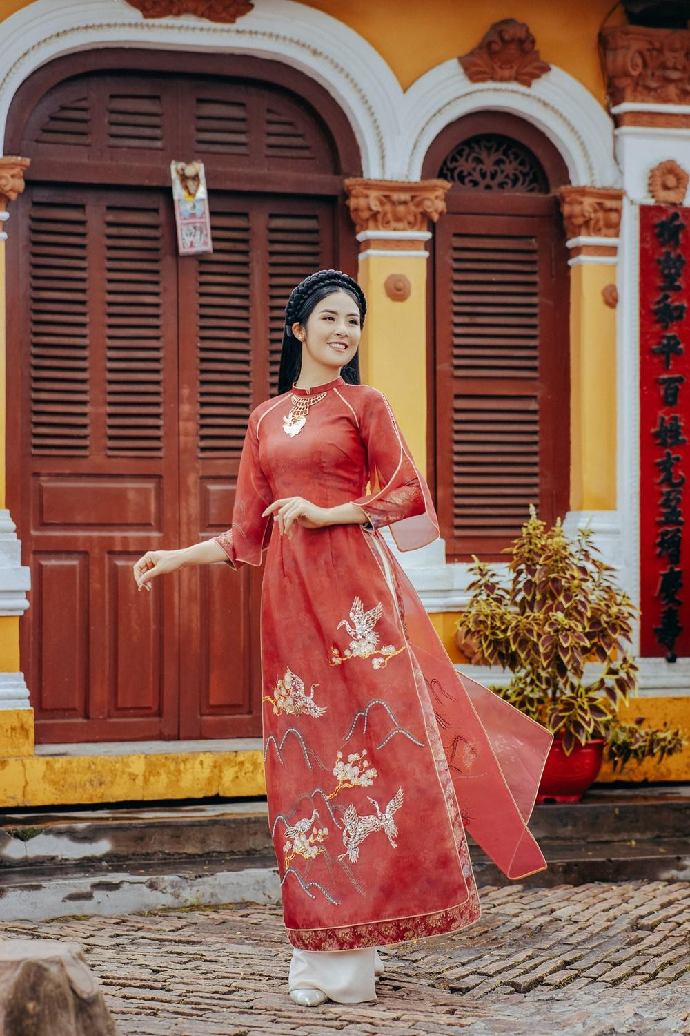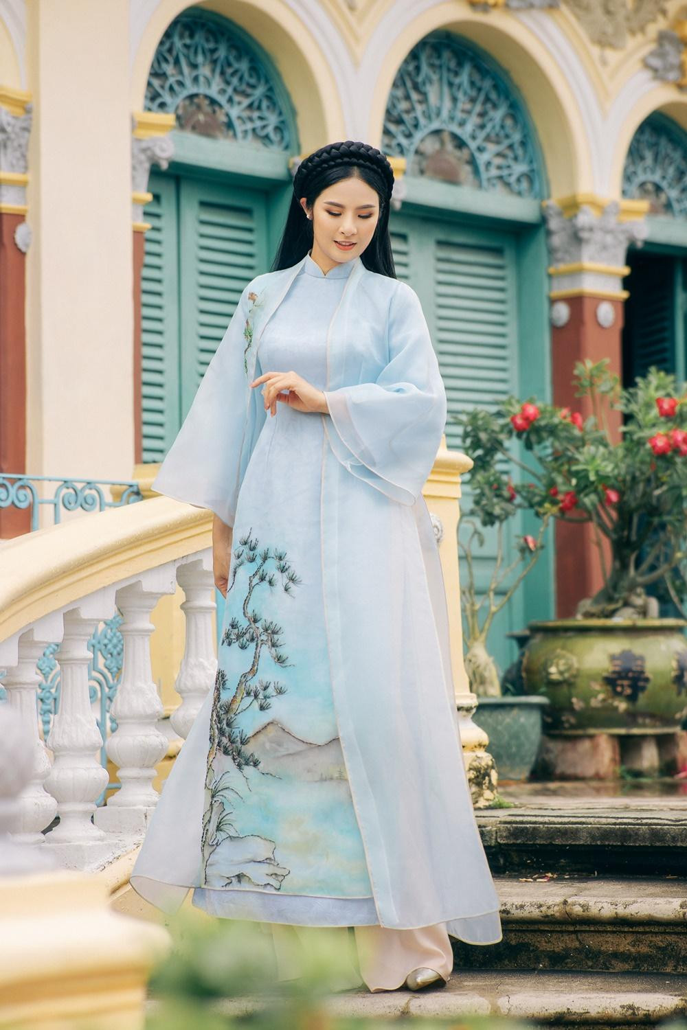 Người đẹp dành gần một ngày để cùng nhiếp ảnh gia khám phá nhiều góc không gian của ngôi nhà, từ bậc cầu thang vào nhà, cổng tam quan hay khuôn viên vườn với hàng hoa giấy, cây xanh mướt. Cô rất phấn khích bởi đây là lần đầu tiên ghé thăm nhà cổ Bình Thủy và có bộ ảnh đáng nhớ với chính những trang phục áo dài do mình sáng tạo.