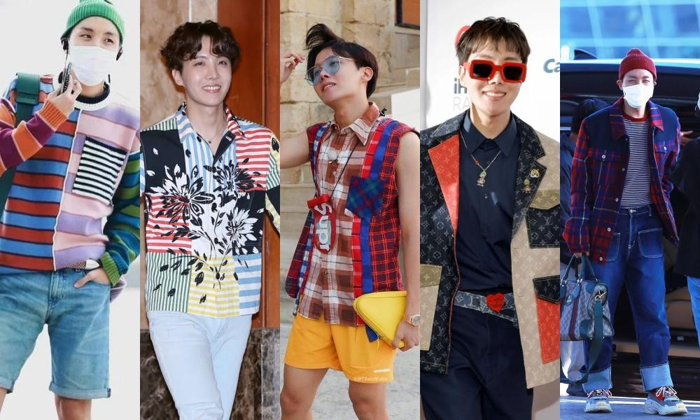 j-hope không hề kén chọn màu sắc trong trang phục, anh chàng có thể mặc bất kỳ màu sắc nào, thậm chí không ngại mặc nhiều màu sắc nổi bật trong cùng một set đồ. Cho dù là đồ đơn sắc hay hoạ tiết, j-hope cũng dễ dàng "cân hết" và tạo thành một bộ trang phục vô cùng cá tính.