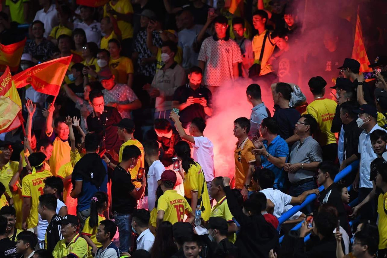 Tuy nhiên, Nam Định không bỏ cuộc và vẫn có 2 bàn thắng rút ngắn tỷ số. Trên khán đài, nhóm CĐV Nam Định đốt pháo sáng ăn mừng khiến lực lượng chức năng phải vất vả dập tắt.