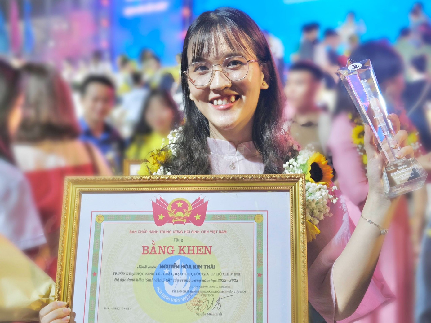 -Đạt danh hiệu Thủ khoa tốt nghiệp xuất sắc toàn trường Đại học Kinh tế - Luật năm 2024 với điểm trung bình tích lũy 9.34 cao nhất trong lịch sử nhà trường