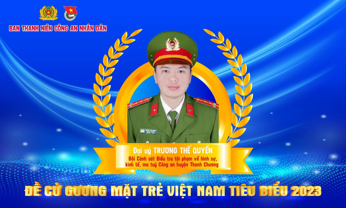 Đại úy Trương Thế Quyền (sinh năm 1991), hiện đang là Phó Đội trưởng Đội CSĐT tội phạm về hình sự, kinh tế, ma túy, Công an huyện Thanh Chương, tỉnh Nghệ An.