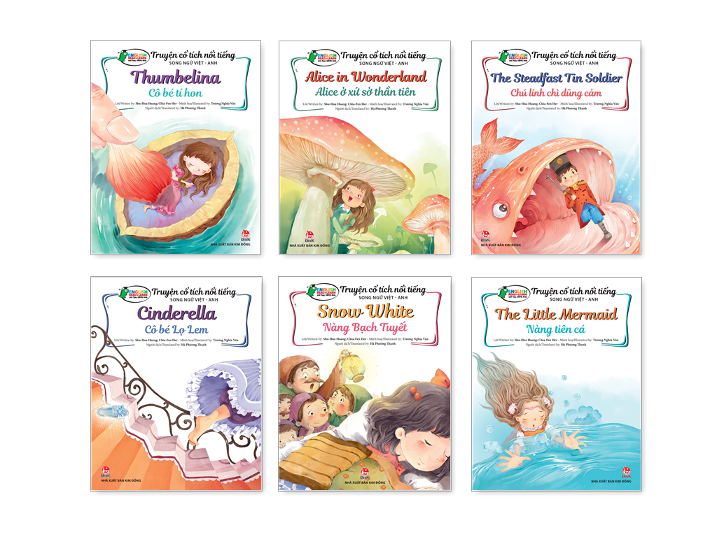 Với 6 tựa sách mới nằm trong bộ sách Vui học tiếng Anh, truyện cổ tích Song ngữ Việt - Anh giúp các bạn độc giả có thể vừa đọc giải trí, vừa rèn luyện ngoại ngữ. Các truyện cổ tích bao gồm: Cô bé Lọ Lem, Alice ở xứ sở thần tiên, Nàng Bạch Tuyết, Chú Lính Chì dũng cảm, Nàng Tiên Cá, Cô bé Tí Hon.
