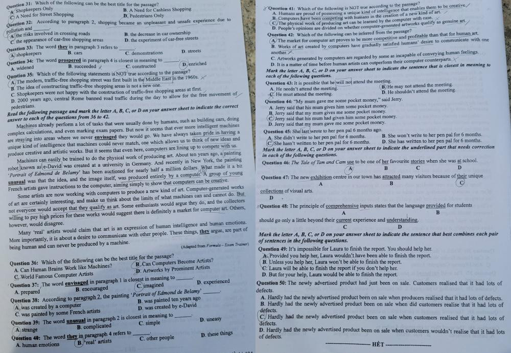 Với đề thi này, thí sinh dễ dàng đạt được mức 7- 8 điểm, mức 9-10 điểm thì yêu cầu thí sinh không chỉ có kiến thức mà phải có vốn từ vựng phong phú cũng như kỹ năng làm bài, khả năng vận dụng tốt.