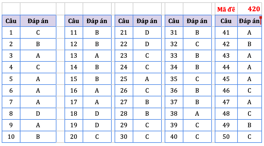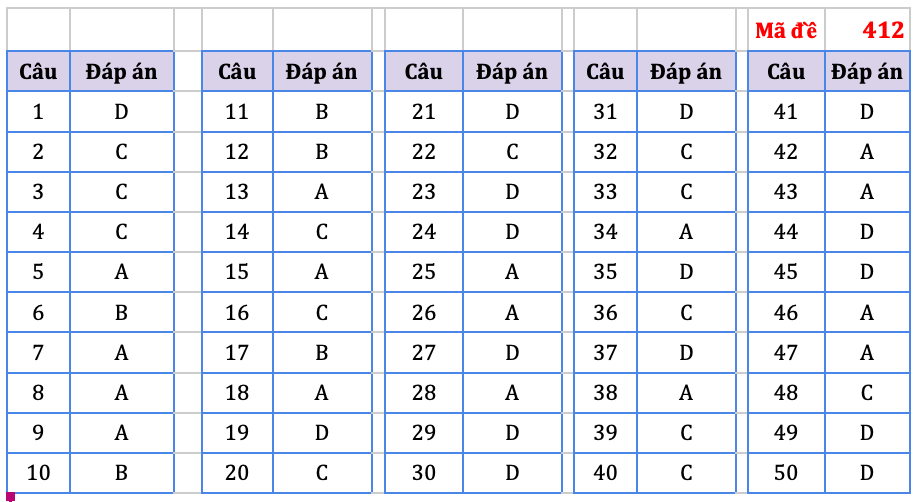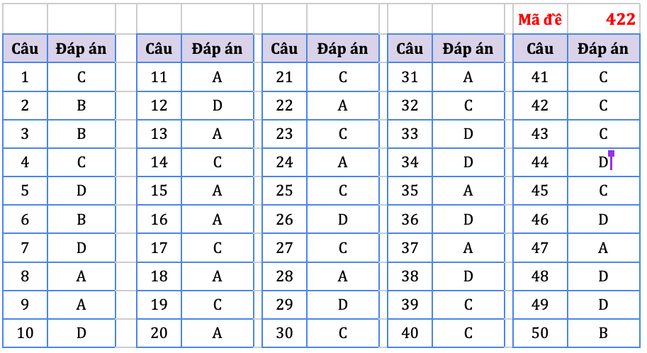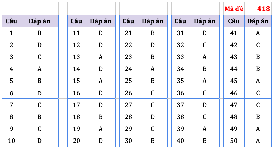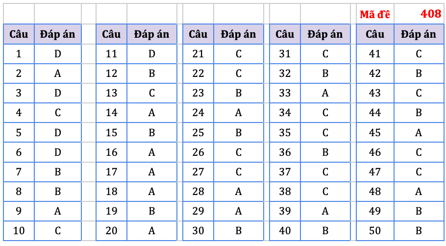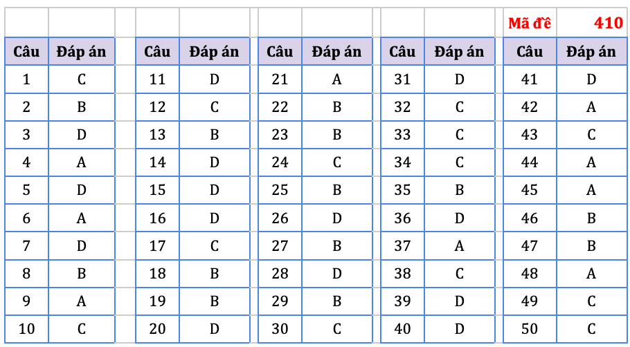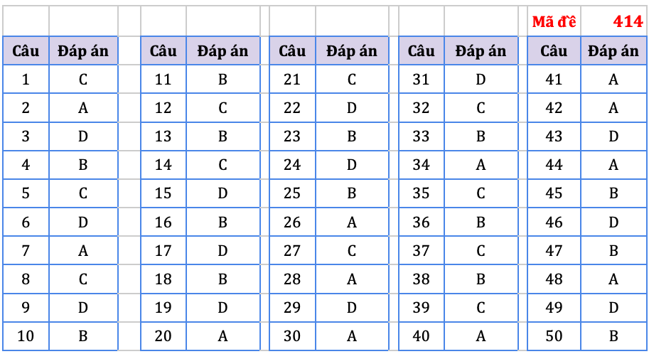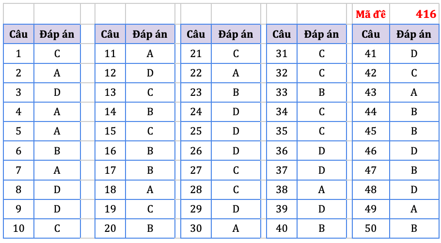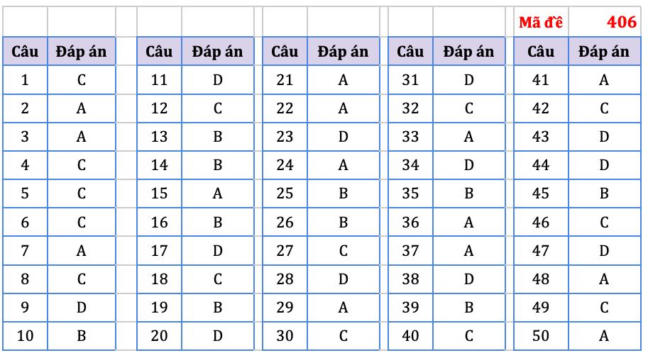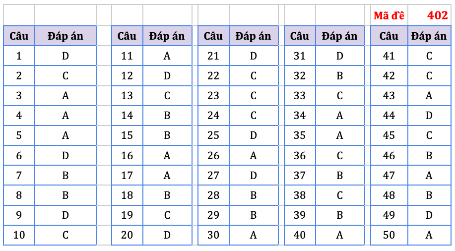 Đáp án do tổ chuyên môn Hệ thống giáo dục HOCMAI thực hiện, mời thí sinh tham khảo: