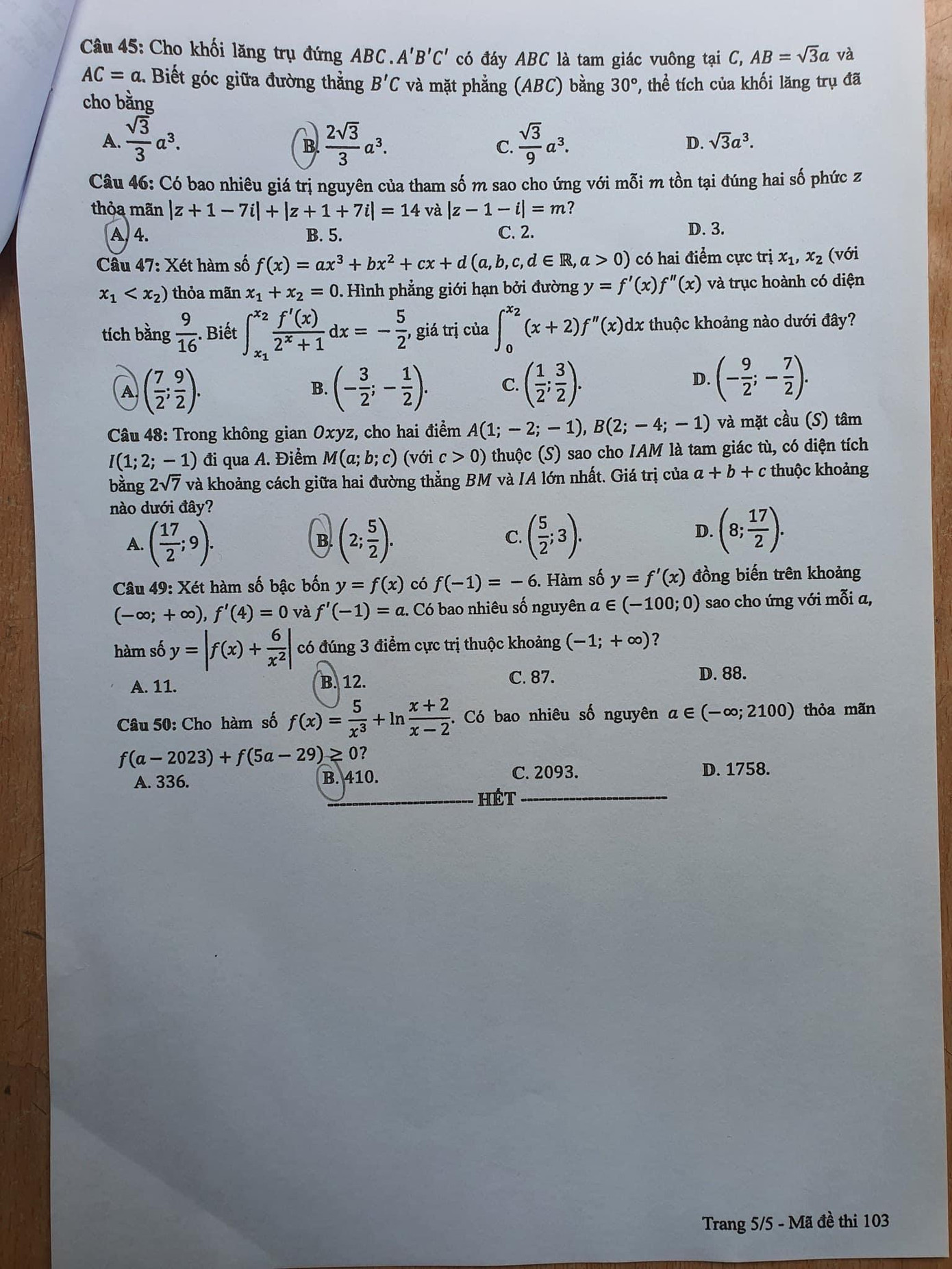 So với đề thi năm 2023, nhóm câu hỏi từ 40 - 50 có mức độ khó hơn, trải đều trong chương trình lớp 12 như: hàm số, số phức, tròn xoay, tọa độ trong không gian, mũ và logarit…