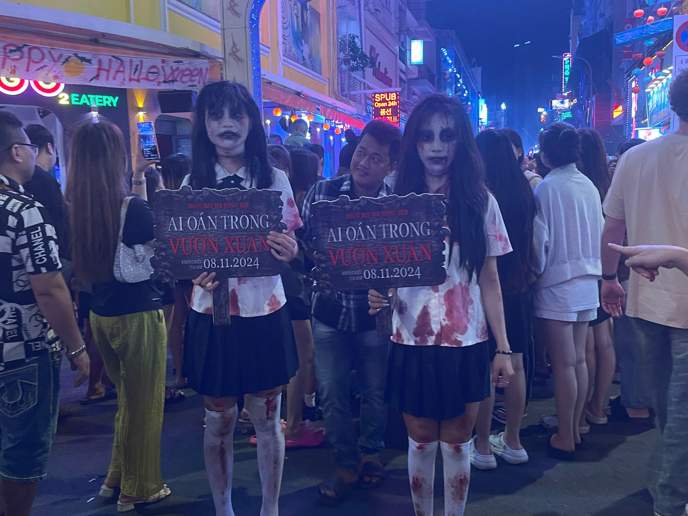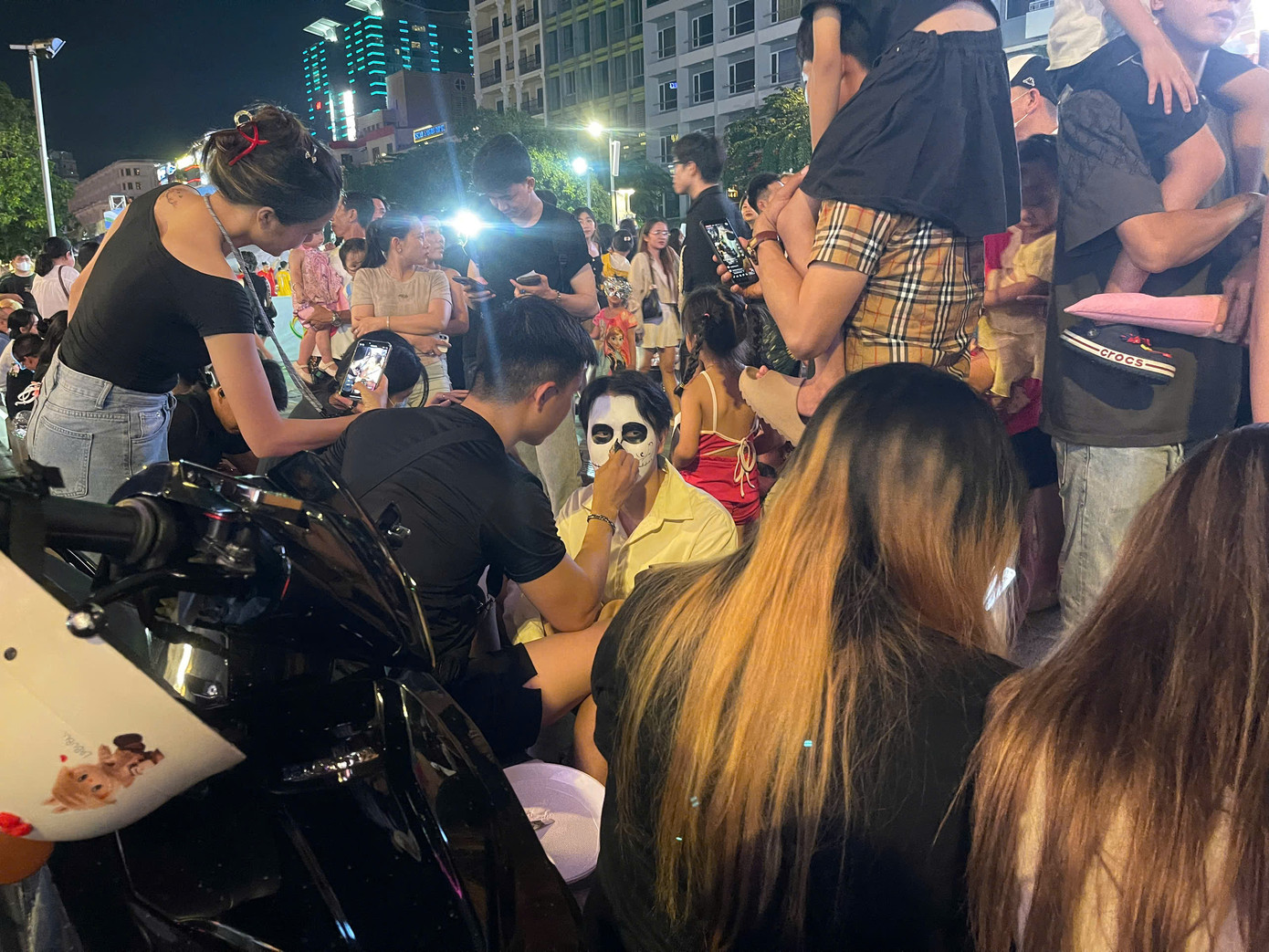 Đúng 22h, dòng người đổ về ngày một đông, nhiều bạn trẻ hoá trang thành các nhân vật kinh dị, tạo nên một khung cảnh đặc trưng chỉ có ở Halloween.