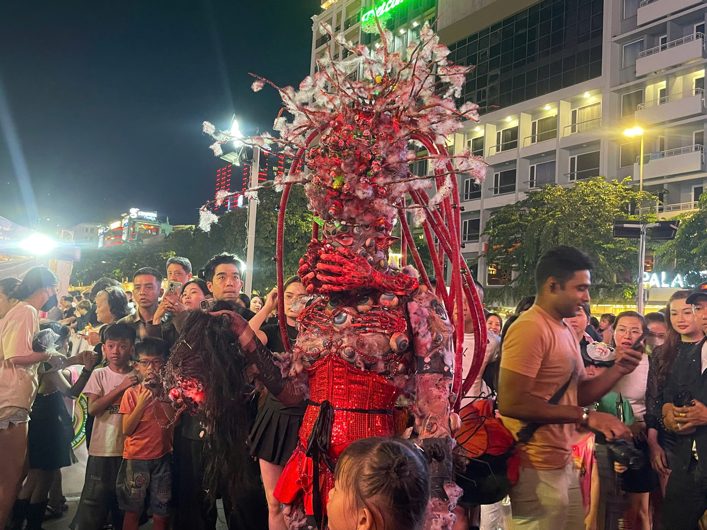 Ngày hội là dịp để các bạn trẻ thỏa sức sáng tạo, biến hóa từ các nhân vật nổi tiếng trong phim ảnh, các nhân vật hoạt hình đến những hình tượng ma quái như phù thủy, ma cà rồng, xác sống... Những bộ trang phục cầu kỳ, đôi khi "rùng rợn", đi kèm với mặt nạ, máu giả và trang điểm sắc nét đã tạo nên một không khí đặc biệt cho đêm hội. Ánh đèn mờ ảo từ các quán cà phê dọc phố đi bộ càng tăng thêm vẻ huyền bí, khiến người đi đường không khỏi “rùng mình” xen lẫn sự thích thú.