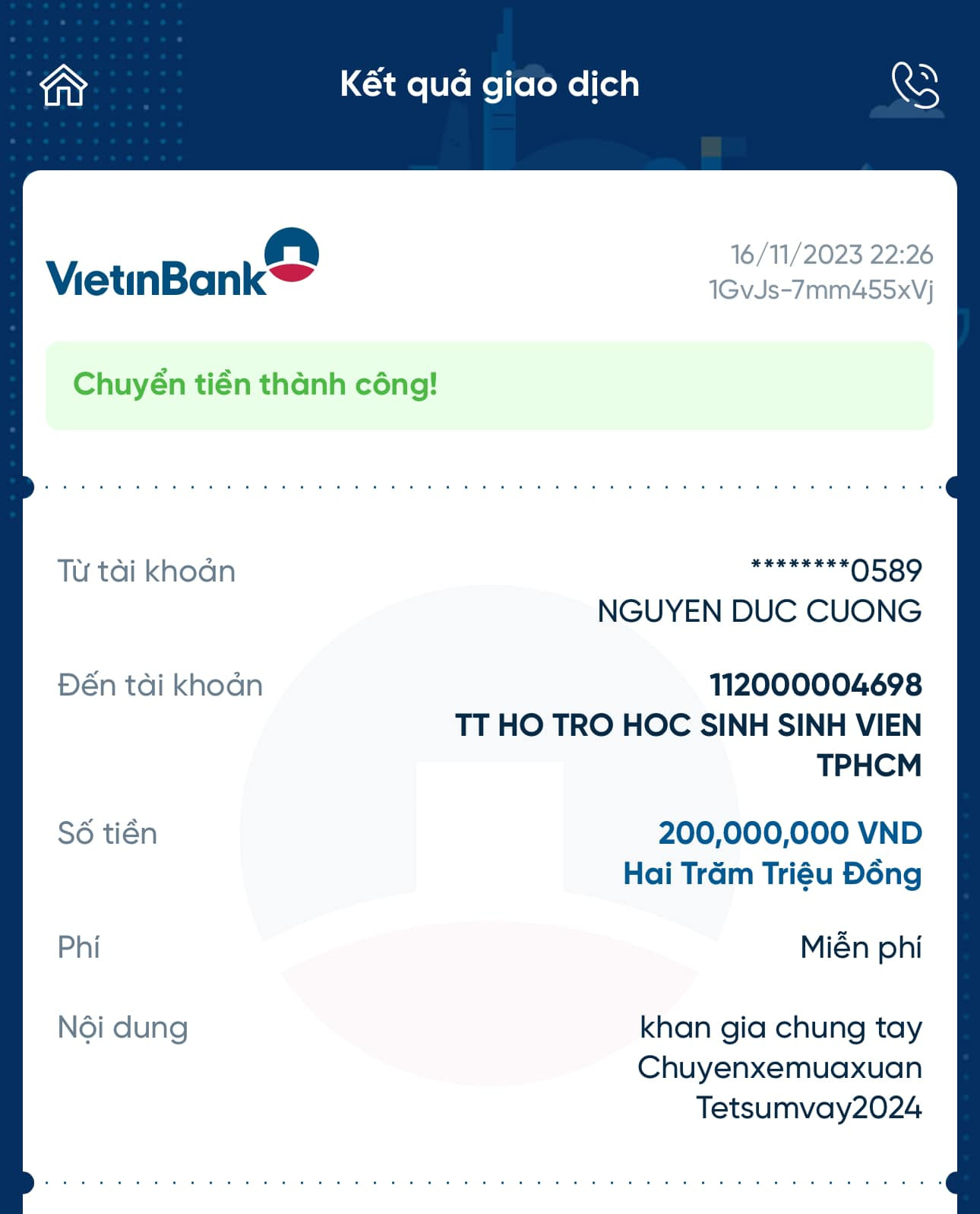 Đáng chú ý, so với con số được công khai, hình ảnh chuyển tiền của Đen càng khiến khán giả khâm phục. Chủ nhân hit Đưa Nhau Đi Trốn đã bỏ tiền túi để "làm tròn" số tiền lên 400 triệu đồng cùng dòng nội dung chuyển khoản: "Khán giả đóng góp phòng tin". Đông đảo khán giả cảm kích: "Tuyệt vời quá anh Đen", "Một sự "gian lận" nhưng ai cũng thích", "Một nghệ sĩ vừa có tâm vừa có tầm",...