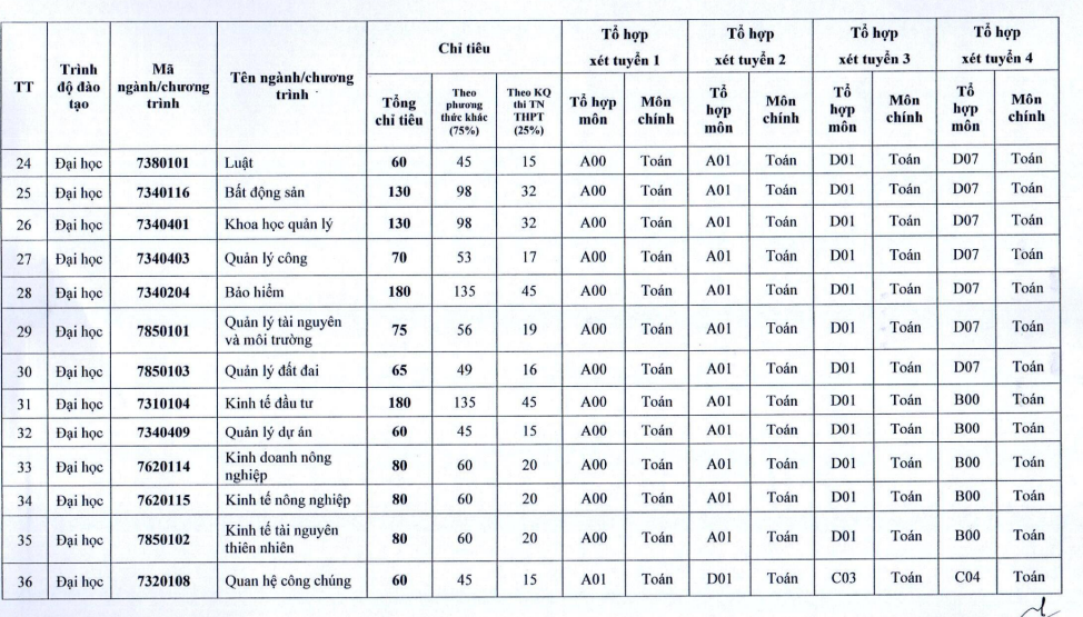 Nếu xét tuyển theo từng đợt/ đối tượng/ phương thức xét tuyển trước chưa đủ chỉ tiêu, chỉ tiêu còn lại được chuyển sang xét tuyển cho các đợt/ đối tượng/ phương thức xét tuyển sau và ngược lại. Chỉ tiêu tuyển sinh đại học chính quy gồm: chính quy đại học/ hệ chuẩn và liên thông chính quy (cao đẳng - đại học; đại học - đại học/ văn bằng 2) được linh hoạt điều chuyển, đảm bảo tổng chỉ tiêu không vượt tổng chỉ tiêu đã đăng ký và công bố.
