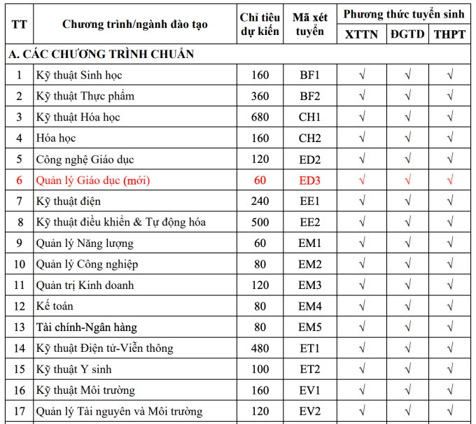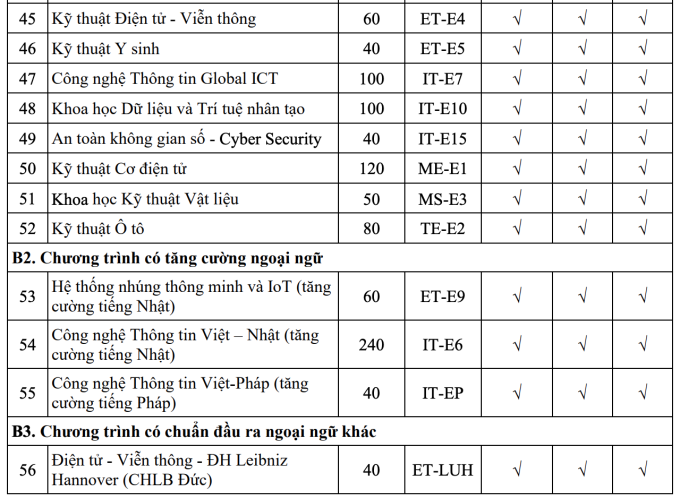 Chỉ tiêu, phương thức xét tuyển từng ngành năm 2024 của Đại học Bách khoa Hà Nội như sau: