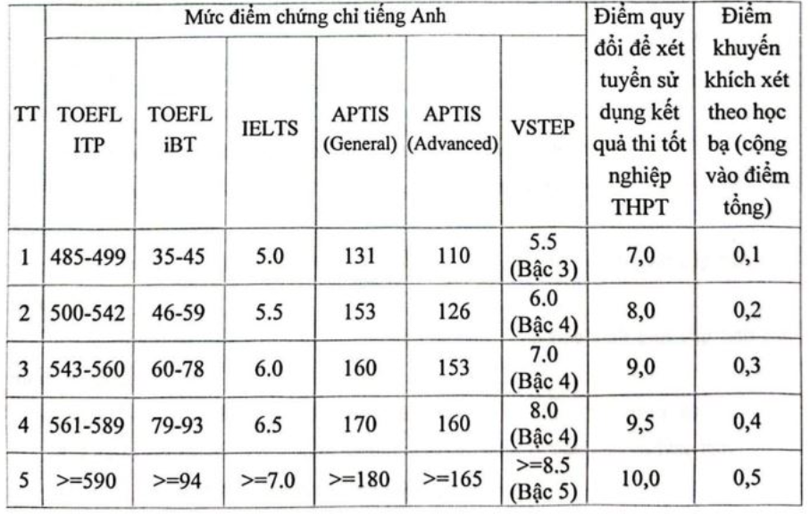 Thí sinh lưu ý riêng ngành Ngôn ngữ Anh không xét tuyển theo kết quả thi Đánh giá năng lực, Đánh giá tư duy.