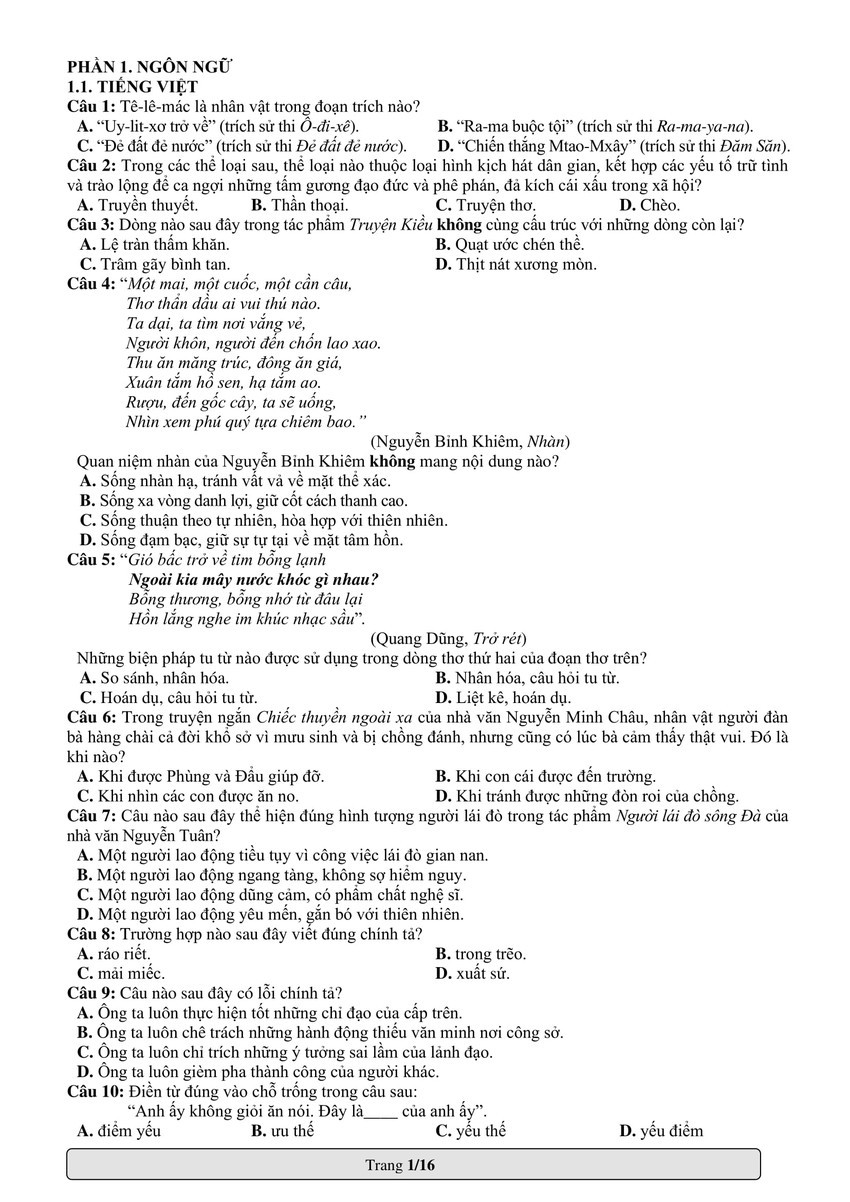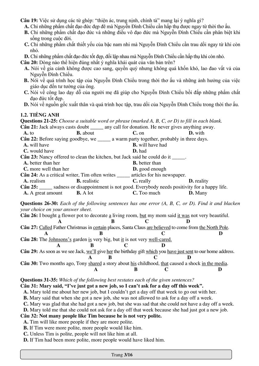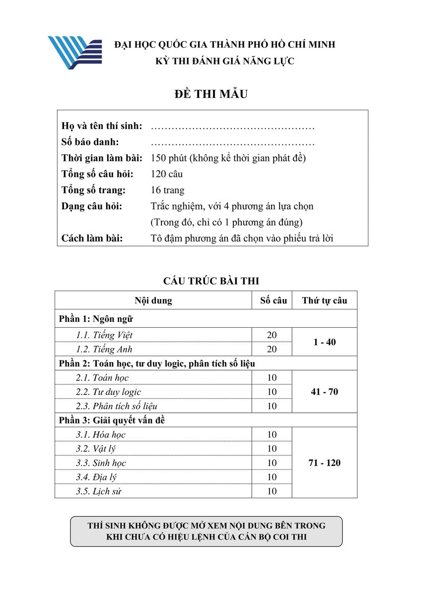 Dưới đây là đề thi minh họa do ĐHQG TPHCM công bố: