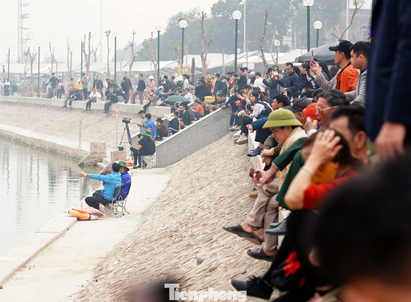 | Sức cuốn hút của các làn điệu Quan họ khiến khán giả tụ tập chật ních cả hai bên bờ hồ. |