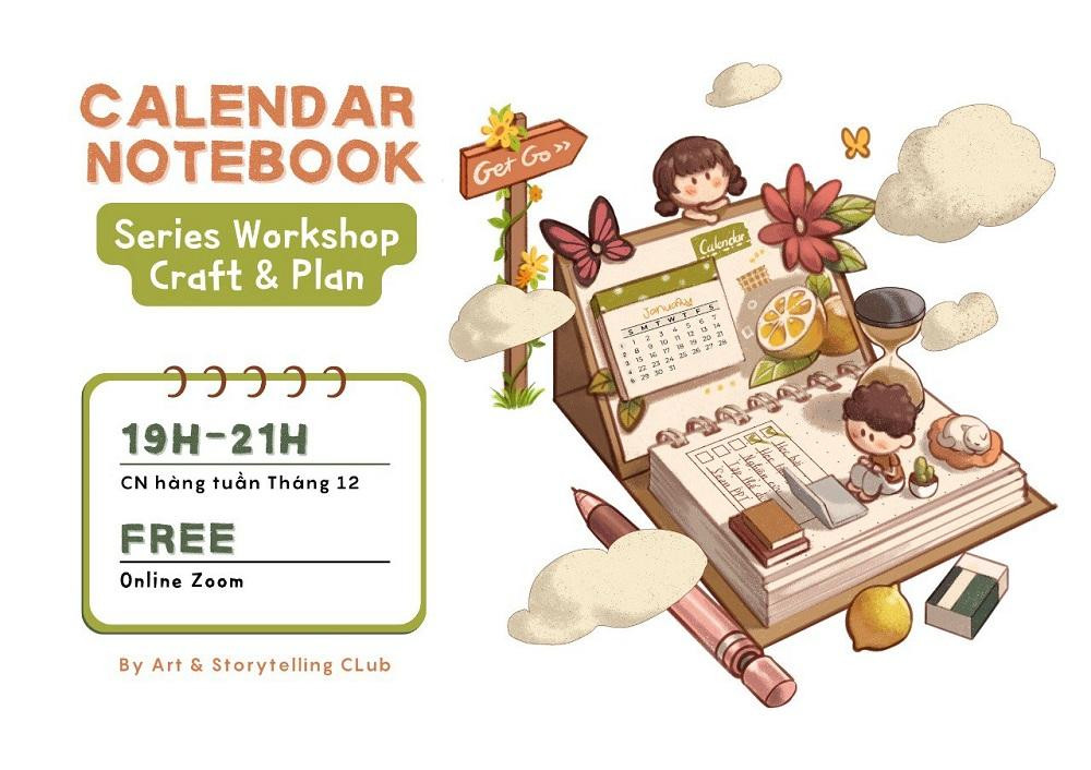 Hãy đến với Chuỗi Trải Nghiệm Art & Storytelling với chủ đề cho tháng 12 mang tên Calendar Notebook: Craft & Plan. Không có hoa tay cũng làm được notebook calendar đấy! Tại workshop, bạn sẽ được hướng dẫn từ A tới Z các hình vẽ đơn giản, cách tô màu và cách làm một cuốn lịch. Từ đó, bạn có thể tự làm cho mình một cuốn lịch di động mang đậm dấu ấn bản thân, lại hữu dụng.