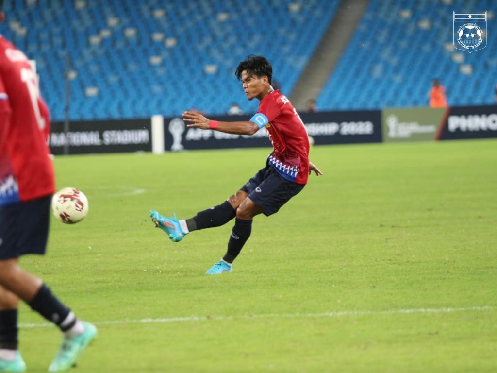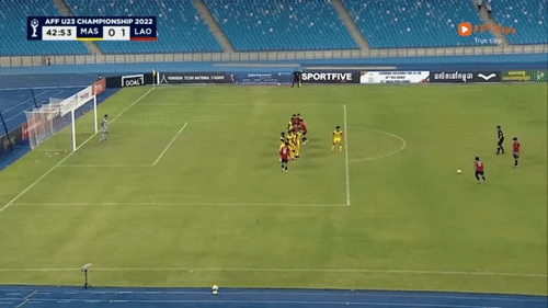 Phút 43, U23 Lào được hưởng quả đá phạt trực tiếp chếch về phía cánh trái. Đội trưởng Bounkong đã vẽ một đường cong tuyệt đẹp vào lưới Malaysia để mở tỷ số cho U23 Lào. Đây là bàn thắng thứ 2 của tiền đạo này vào lưới Malaysia ở giải U23 Đông Nam Á 2022.