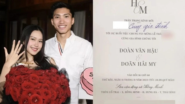 Theo tấm thiệp mời cưới được rò rỉ, lễ cưới của cặp "trai tài, gái sắc" sẽ được tổ chức vào ngày 11/11 tới đây, tại Thái Bình - quê nhà của cầu thủ Đoàn Văn Hậu.