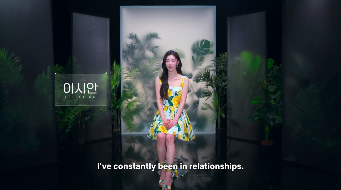 Lee Si An là nhân tố nổi bật nhất Địa Ngục Độc Thân mùa 4. Người chơi 25 tuổi "chiếm sóng" tại show hẹn hò khi nảy sinh tình cảm với tận 3 người chơi nam. Trong những diễn biến tại Single's Inferno 4, mỹ nữ 25 tuổi gây chú ý nhờ các tạo hình thời trang sành điệu.