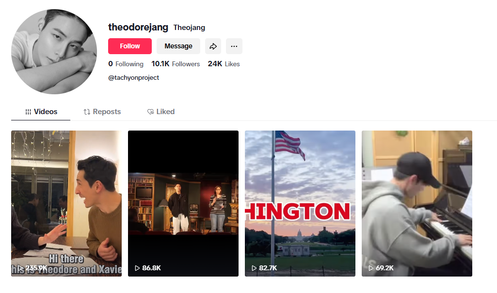 Một số người dùng là MC, KOL từng hợp tác công việc với Jang Theo đều tag tài khoản này khi đăng clip quay cùng nam diễn viên. Vì thế, có nhiều cơ sở để khán giả tin rằng đây là tài khoản TikTok của Jang Theo, dù chúng không được liên kết trực tiếp tới tài khoản Instagram chính chủ của anh.